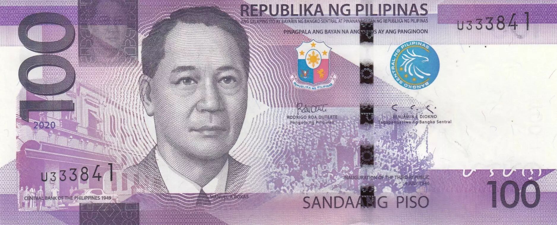 Home > World Banknotes > Asian Banknotes > Philippines > Philippines 100 Piso - M. Rowas - Whale shark , Mayon volcano- 2020 - Serial U