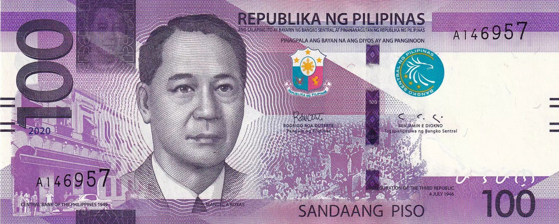 Banknote Philippines 100 Piso - M. Rowas - Whale shark , Mayon volcano- 2020 - UNC - P.NEW