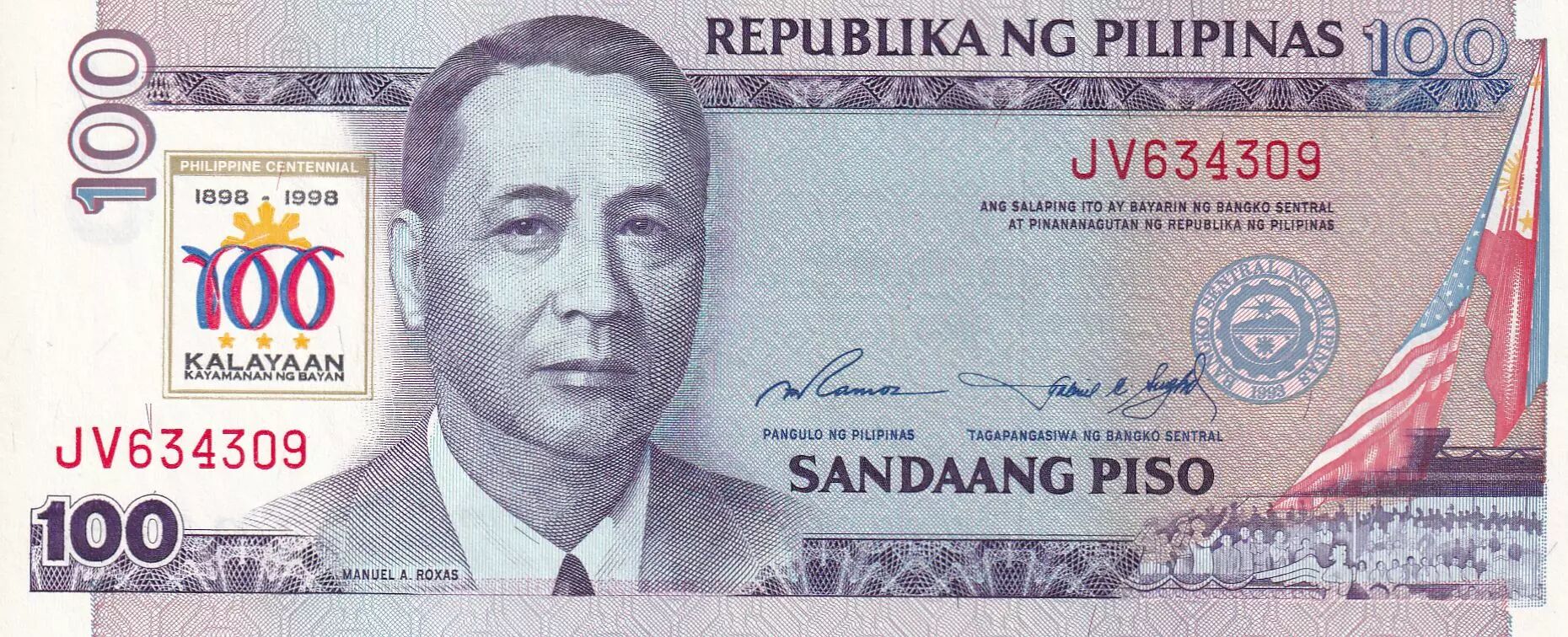 Home > > Philippines 100 Piso - M.A. Roxas - Central bank of Philippines - 1998 - UNC - P.188b