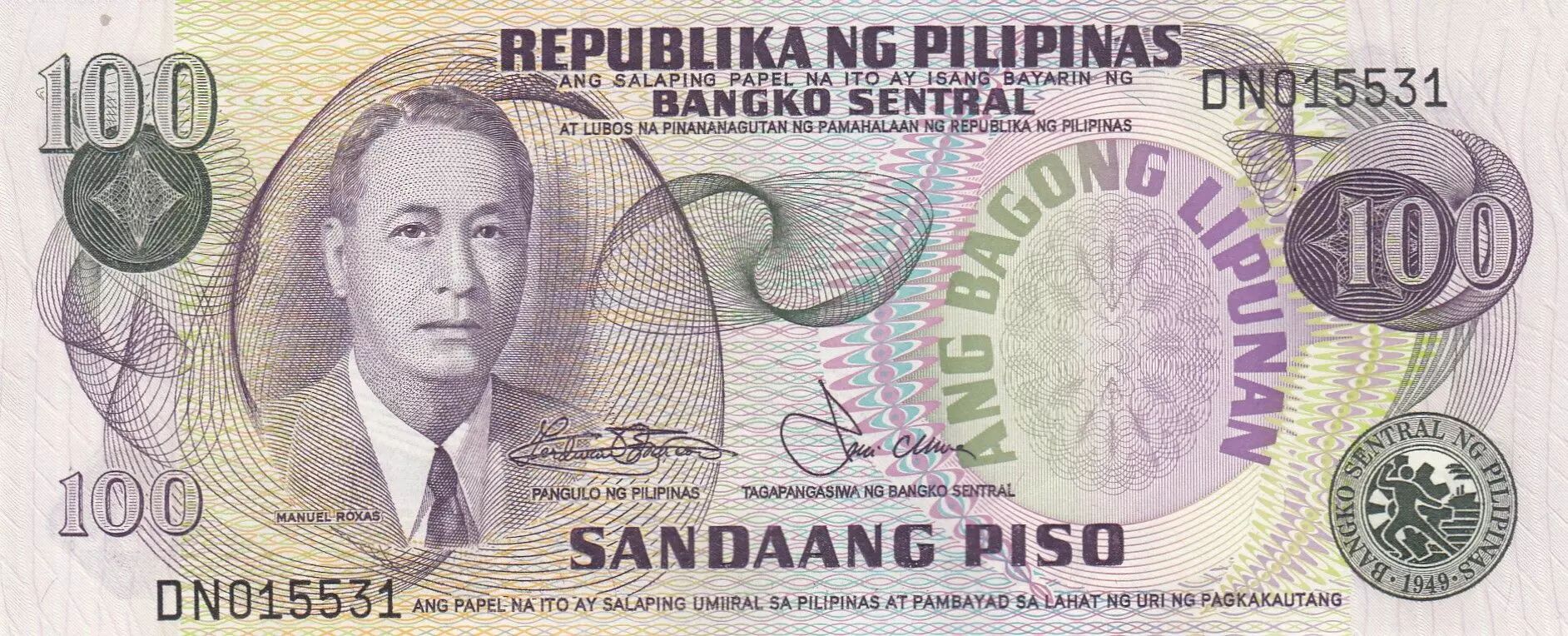 Accueil > Billets du Monde > Billets d'Asie > Philippines > Philippines 100 Piso - Manuel Roxas - Banque centrale - 1978 - Série DN