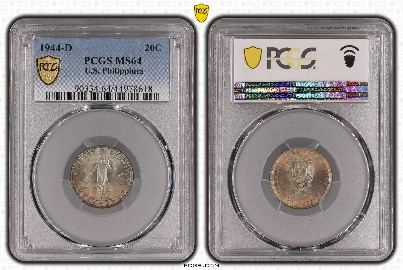Coin Philippines 20 Centavos, Woman and anvil - 1944 D - PCGS MS65
