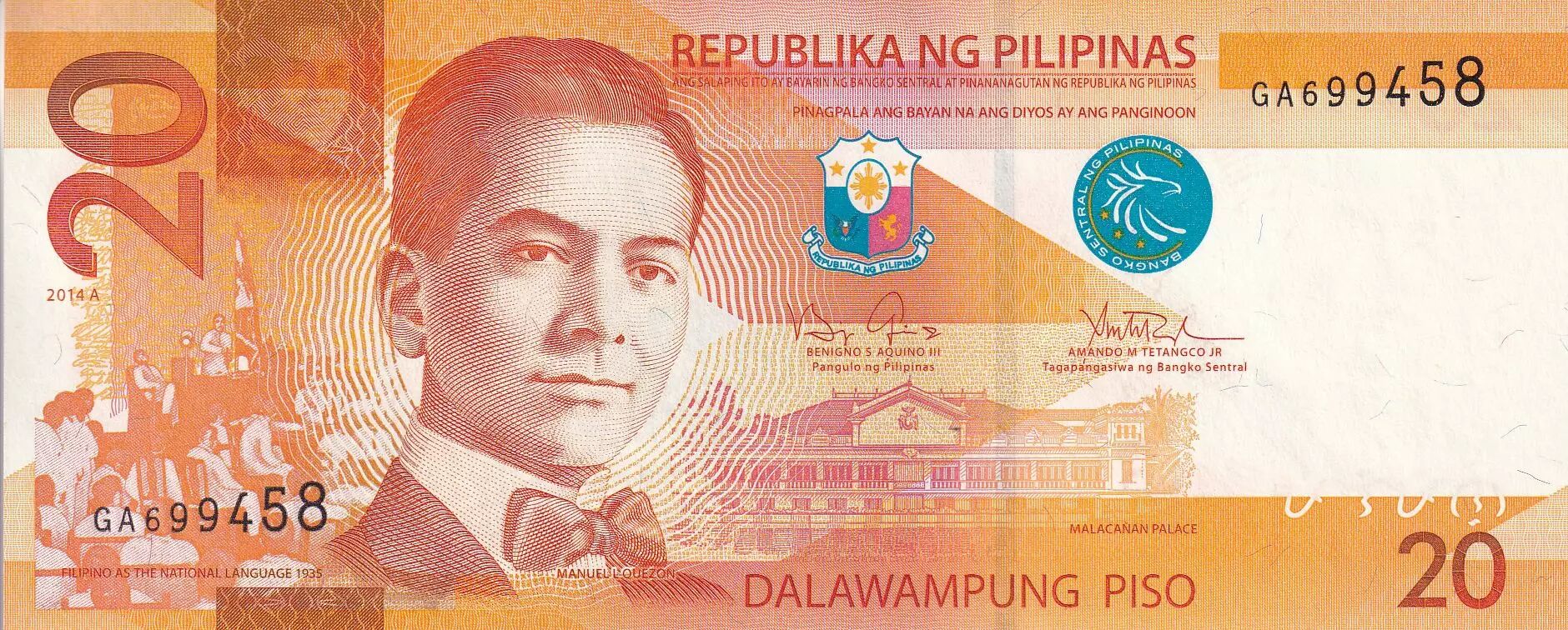 Banknote Philippines 20 Piso - M.L. Quezon - Civet - 2014 A - Serial GA - P.206a