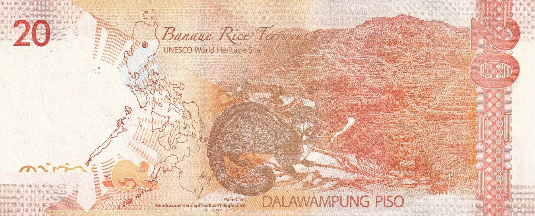 Accueil > Archivage > Philippines 20 Piso - M.L. Quezon - Civette - 2014 A - Série GA - P.206a