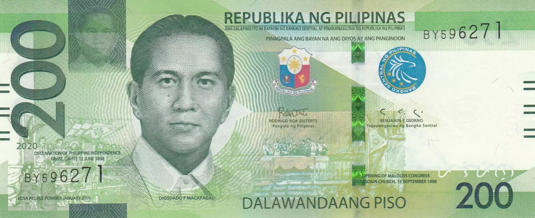 Accueil > Billets du Monde > Billets d'Asie > Philippines > Philippines 200 Pesos - Diosdado P. Macapagal - 2020 - Série BY