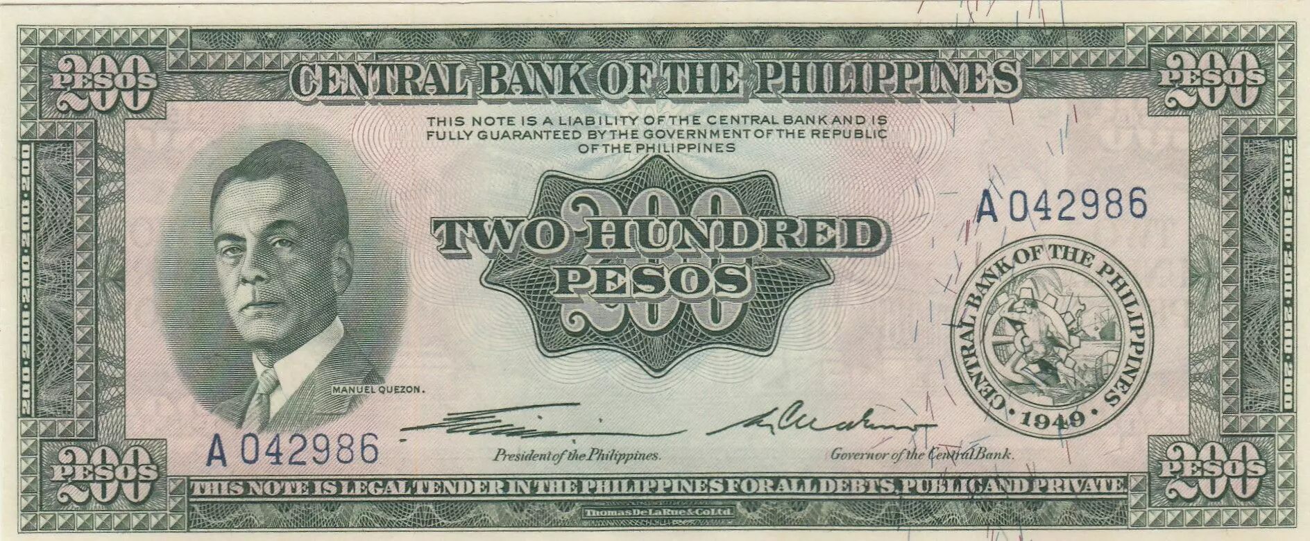 The 200 Philippine Peso banknote, issued in 1949, is a testament to the country's monetary history. This banknote belongs to series A and highlights Manuel Quezon, an iconic figure in the Philippines.