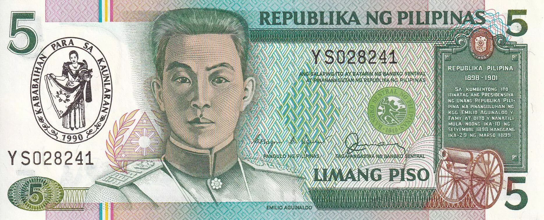 Billet Philippines 5 Piso - E. Aguinaldo - Déclaration d'indépendance - 1990 - NEUF - P.178