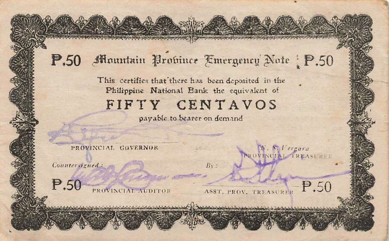 Billet Philippines 50 Centavos - Mountain Province - ND (1942) - P.S594b