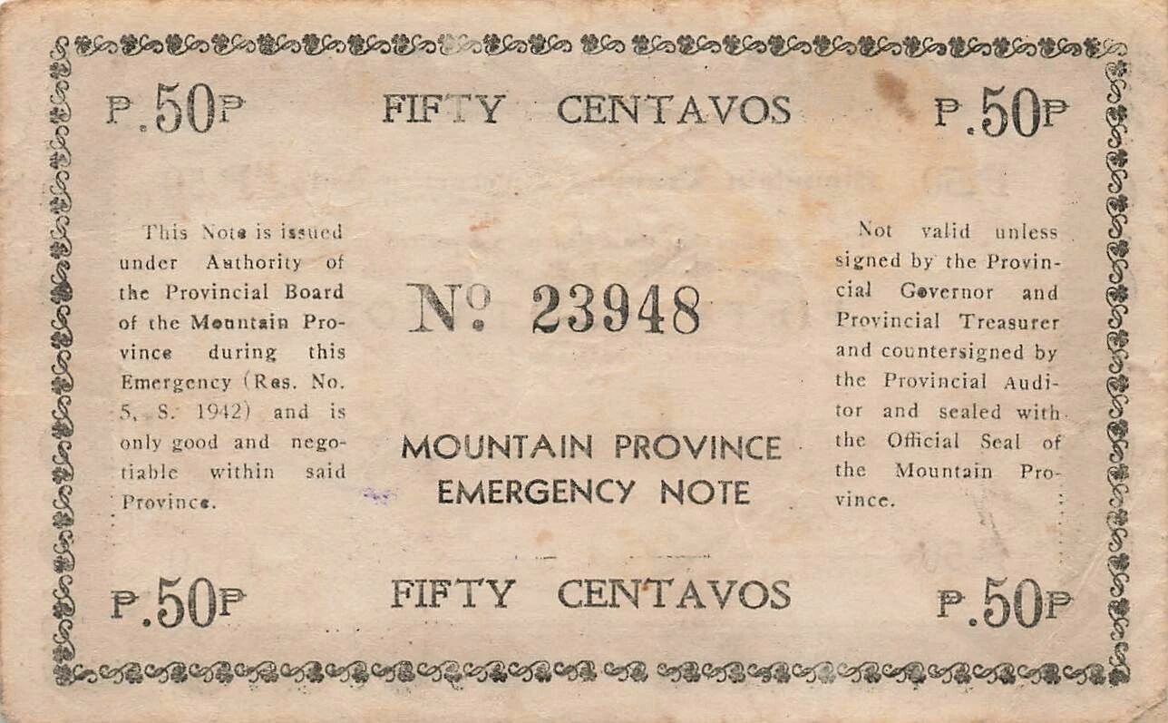 Accueil > Les thématiques > Philippines 50 Centavos - Mountain Province - ND (1942) - P.S594b