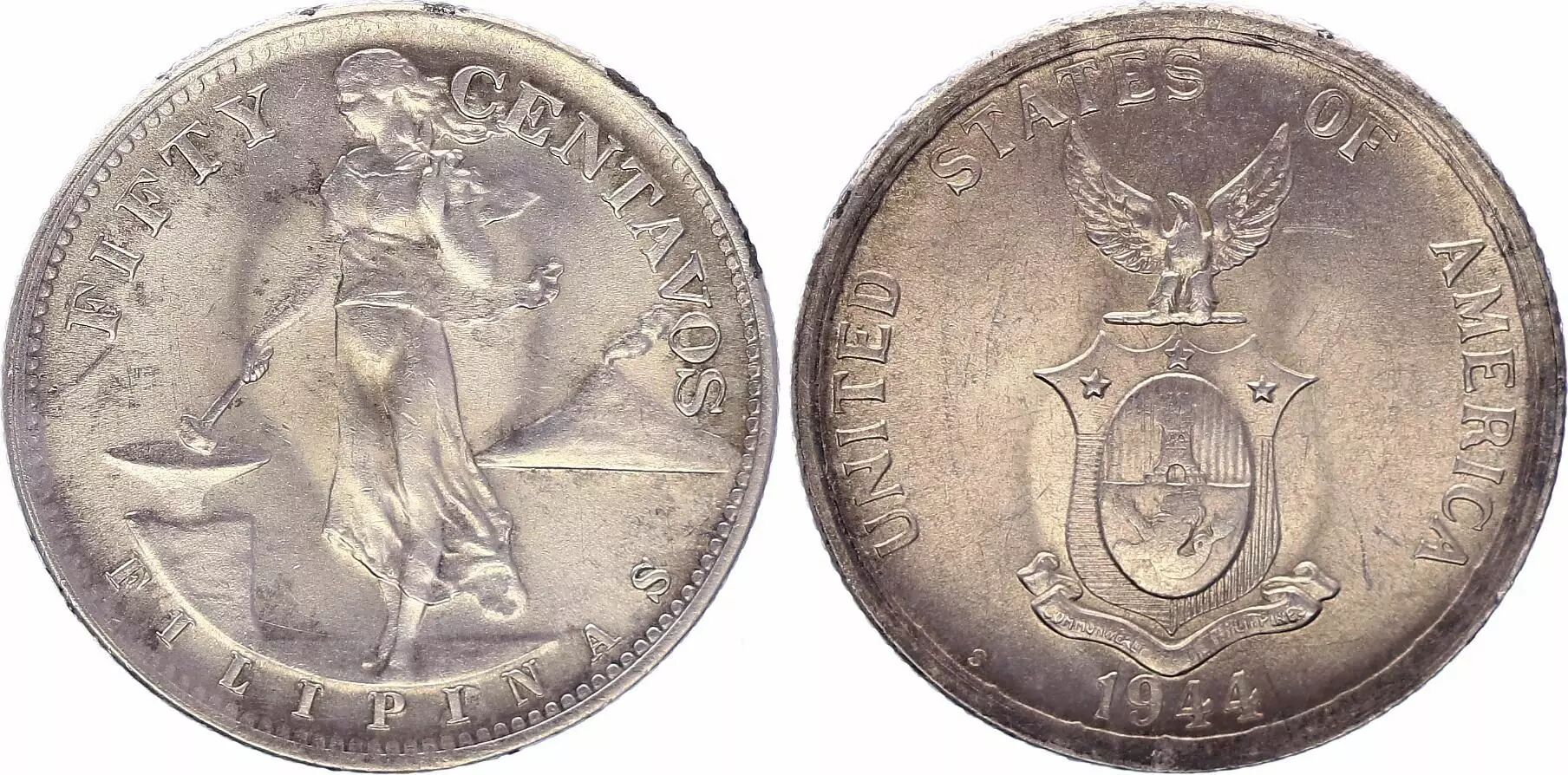Home > > Philippines 50 Centavos - United States of America - 1944 S - XF