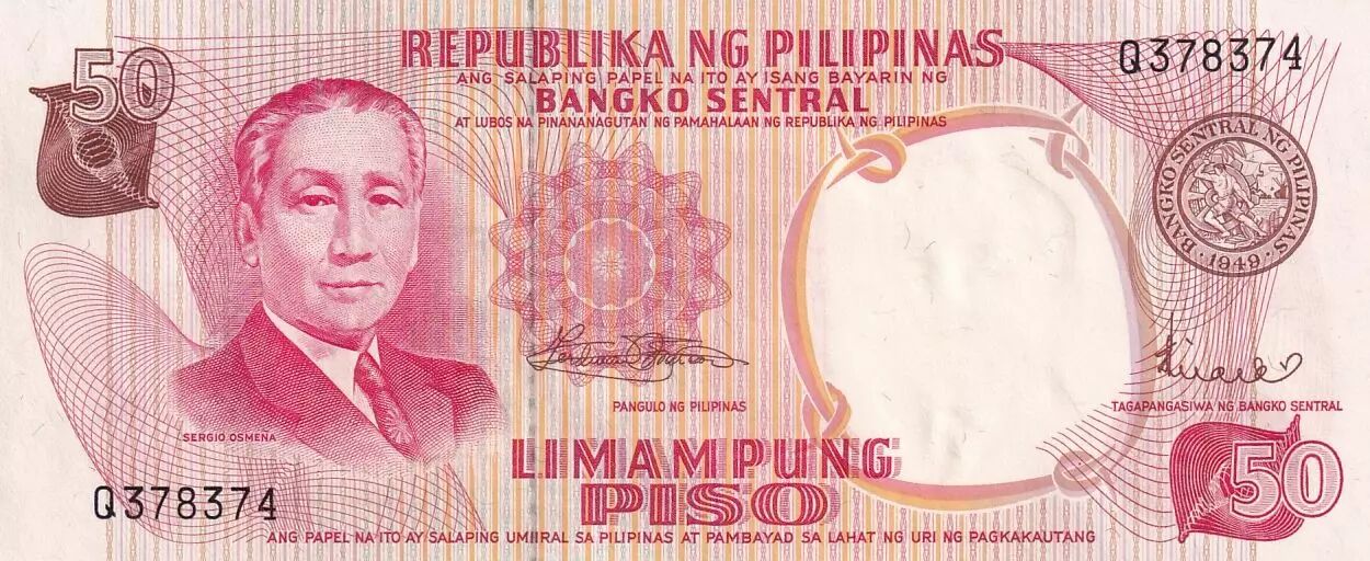 Accueil > Archivage > Philippines 50 Piso - Prés. S. Osmeña - ND (1969) - P.146b