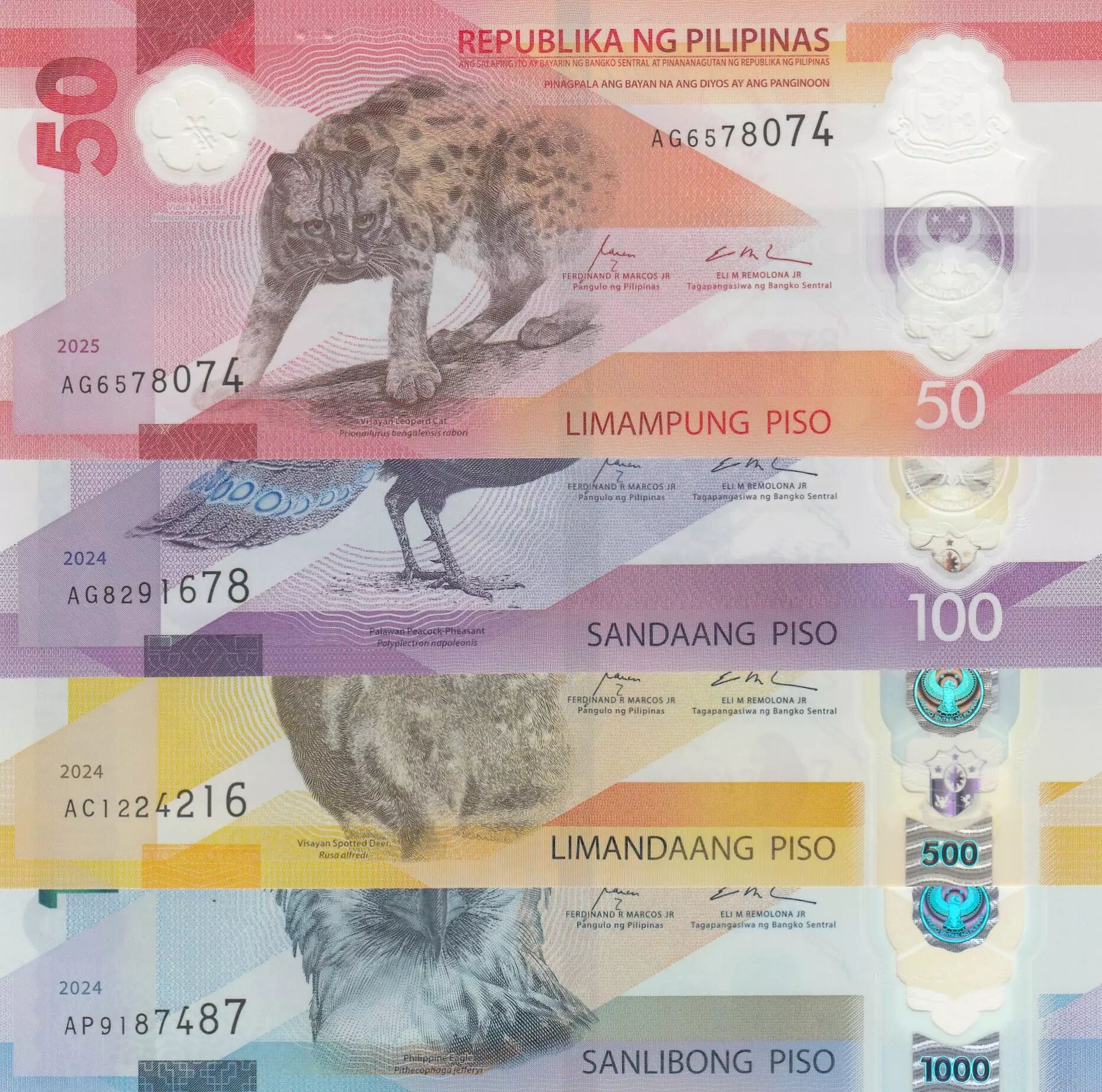 La série philippine de billets en polymère 2024-2025, composée des coupures de 50, 100, 500 et 1000 pesos, met à l?honneur la faune, la flore et les paysages emblématiques de l?archipel.