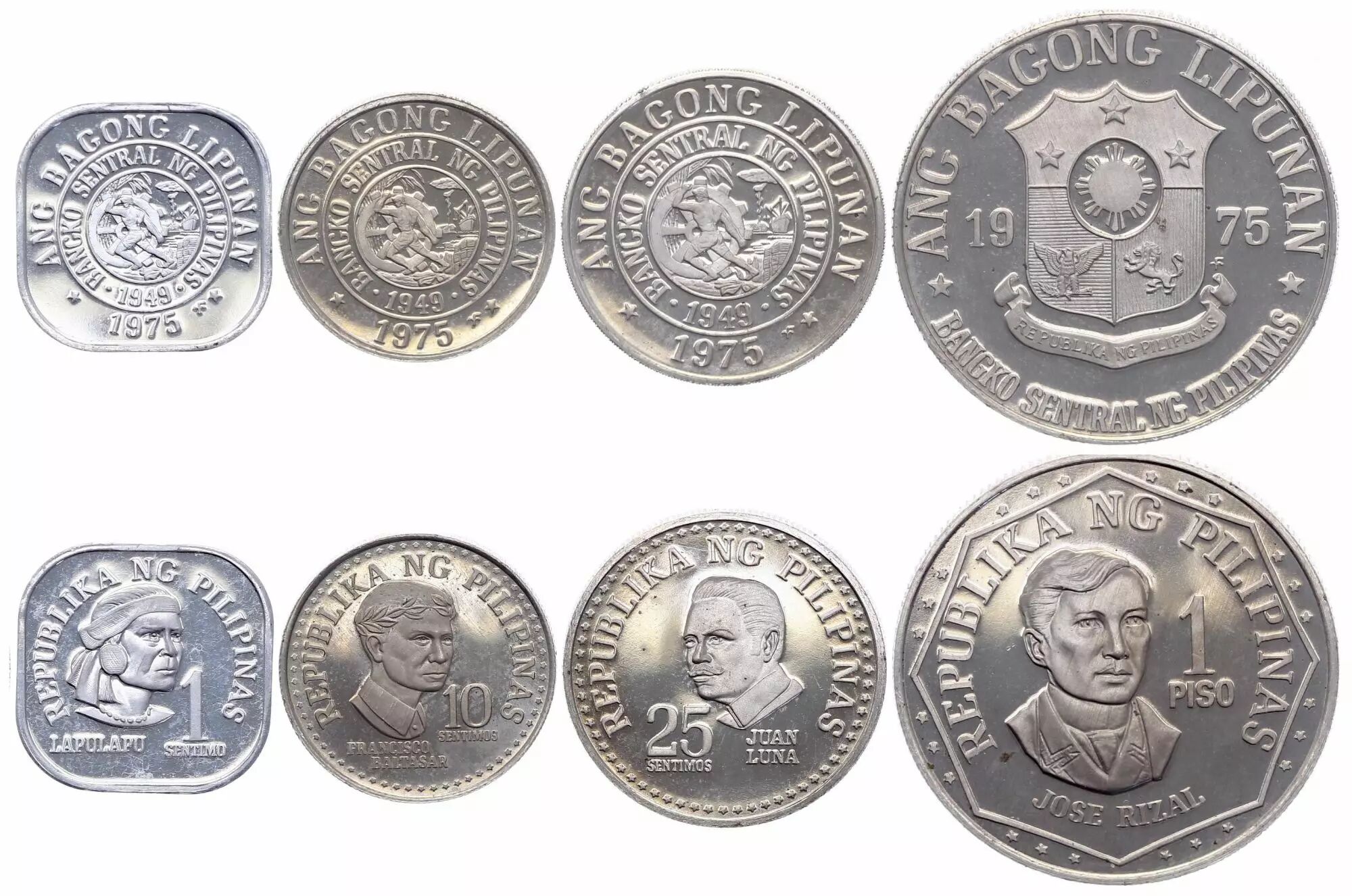 Included: 1 sentimo Lipunan, 10 sentimo Francisco Baltasa, 25 sentimo Juan Luna, and the 1 Piso José Rizal