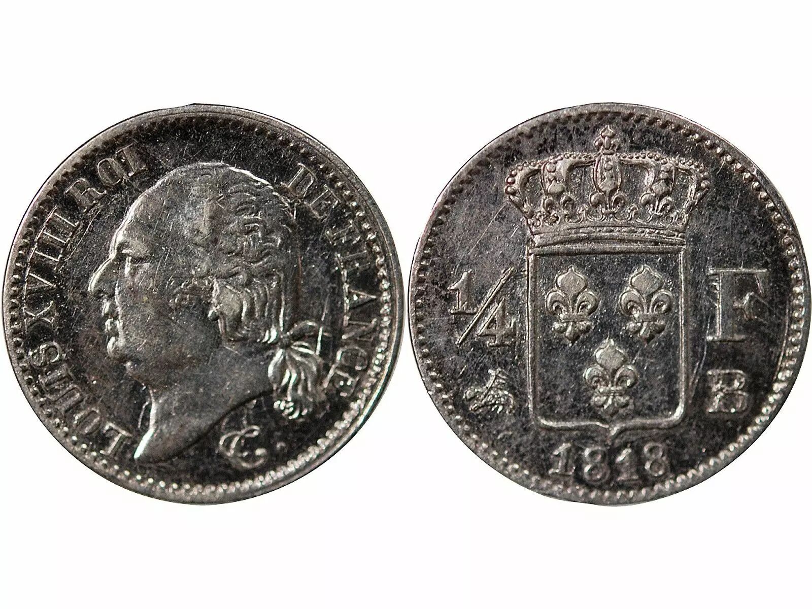 Coin Pièce France 01-avr franc Silver Louis XVIII 1818 B Rouen