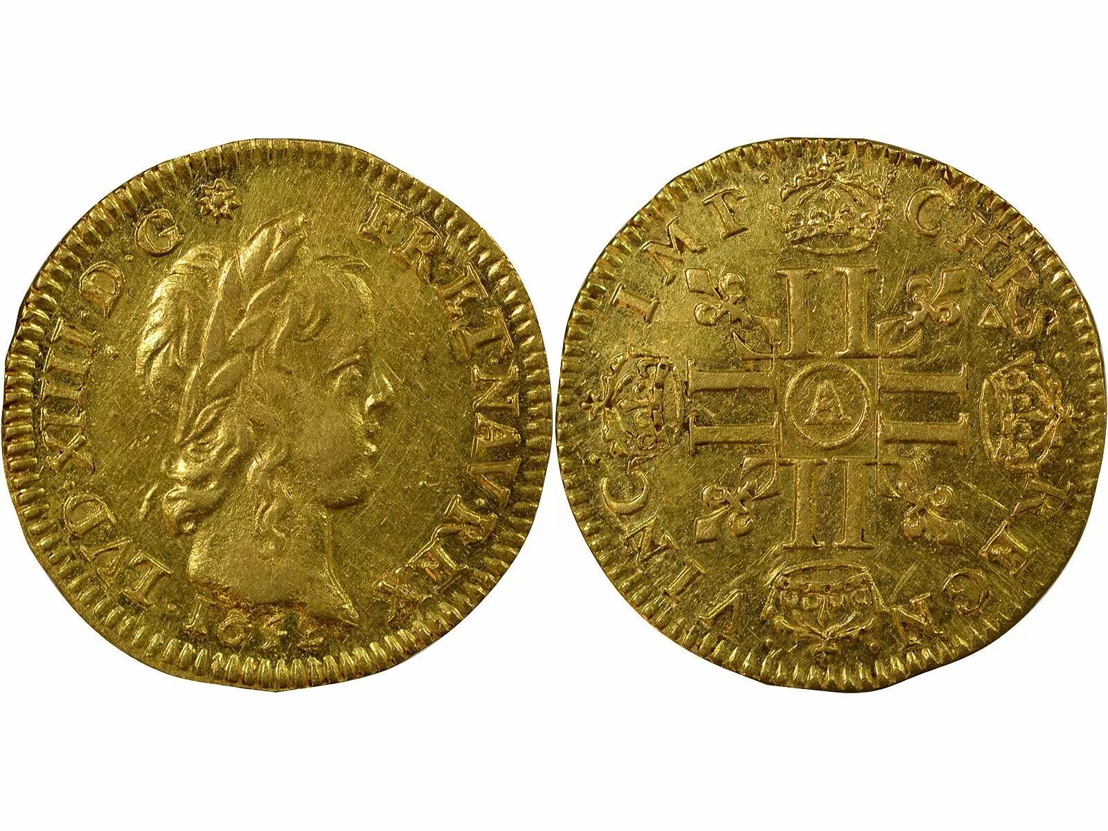 Coin Pièce France 1/2 louis d'or Gold Louis XIV 1652 A Paris