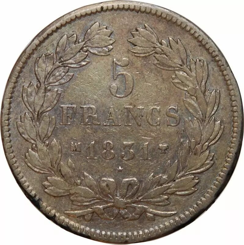 Coin Pièce France 5 francs Silver Louis-Philippe Ier 1831 MA Marseille