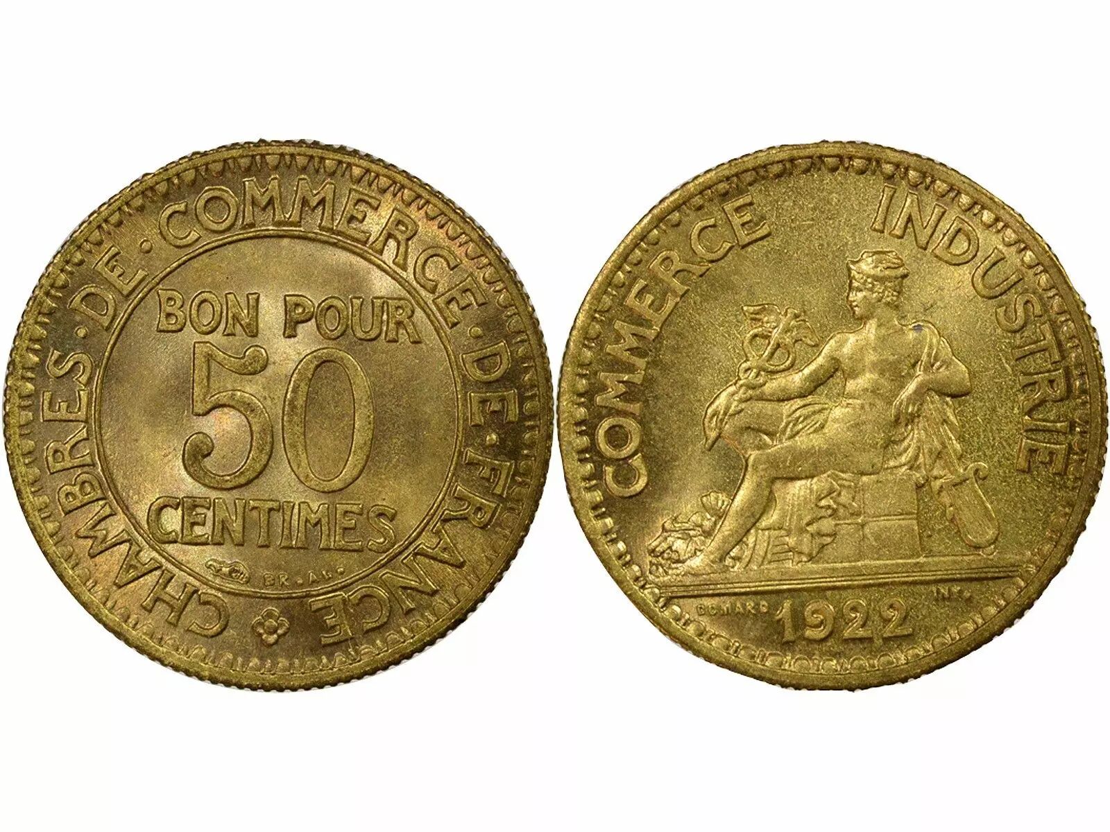 Coin Pièce France 50 centimes Bronze-Alu 1922