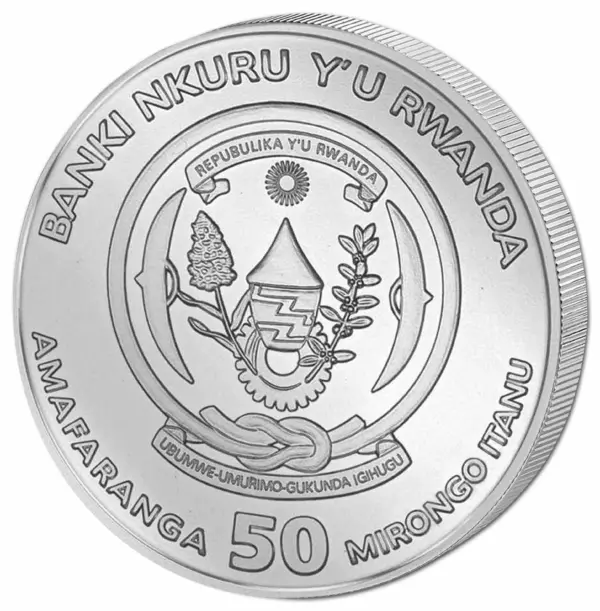 This commemorative coin, minted in Rwanda, is dedicated to the Lunar Year of the Horse 2026. Its face value is 50 Amafaranga.