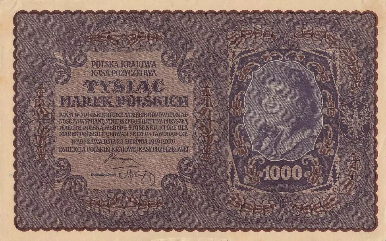 Banknote Poland 1000 Marek Tadeusz Kosciuszko - 1919 - I série AA