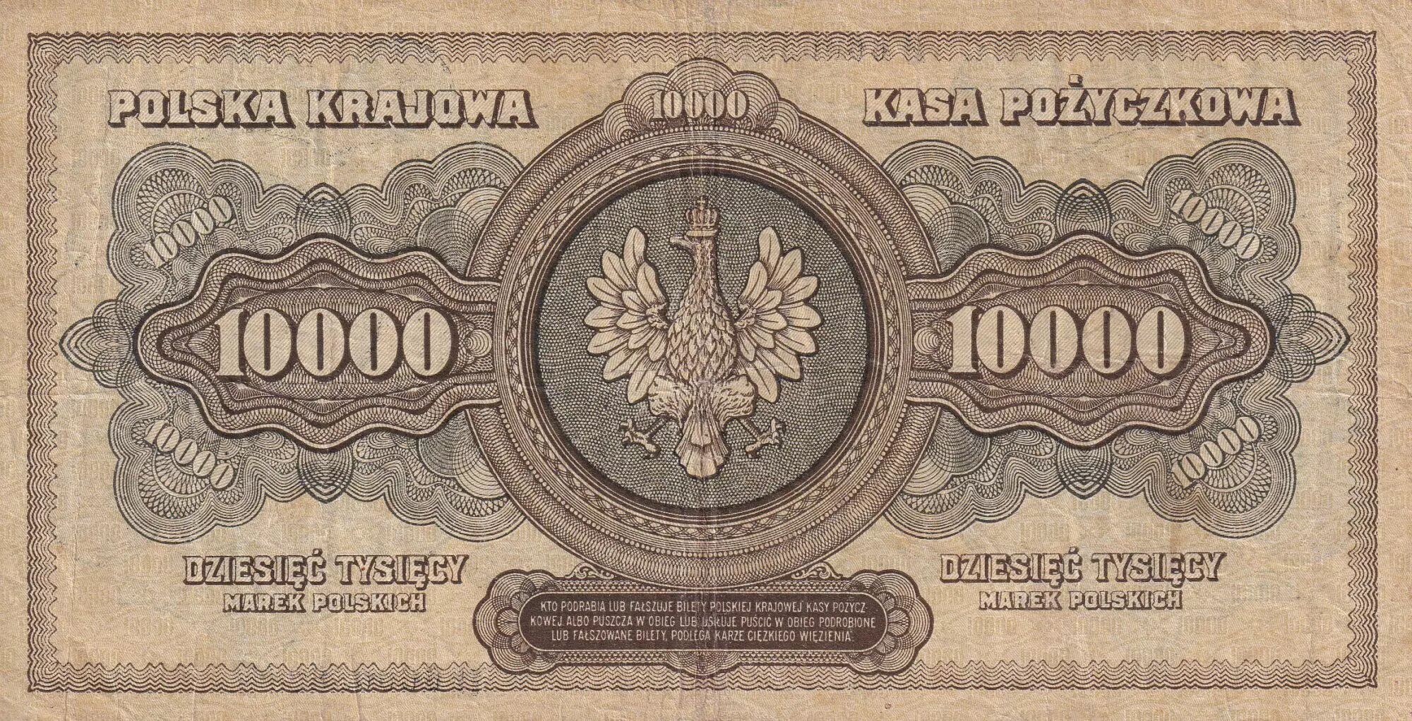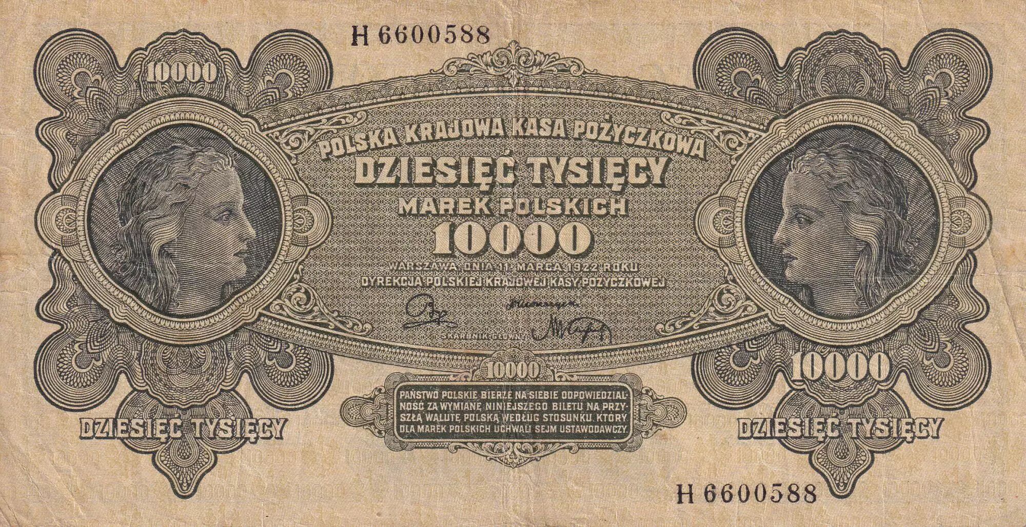 Banknote Poland 10000 Marek - Women - 1922 - Serial H - VF - P.32