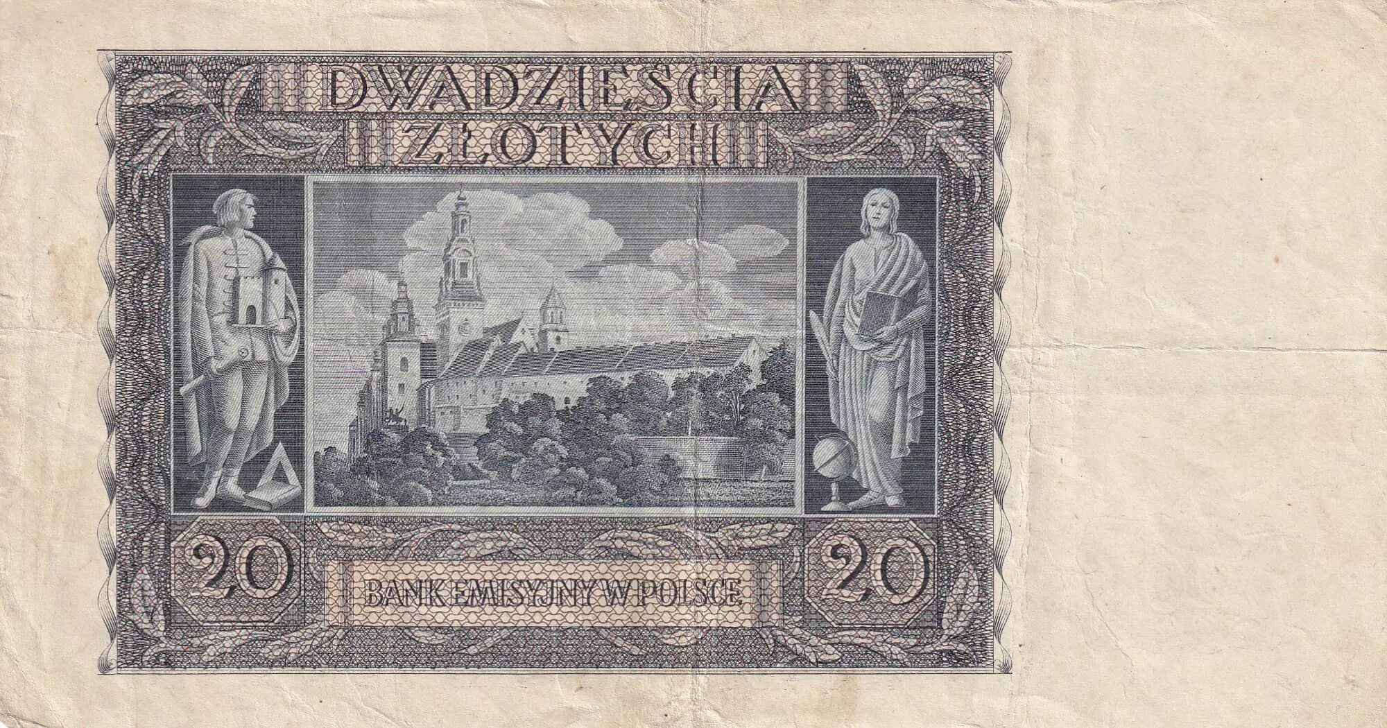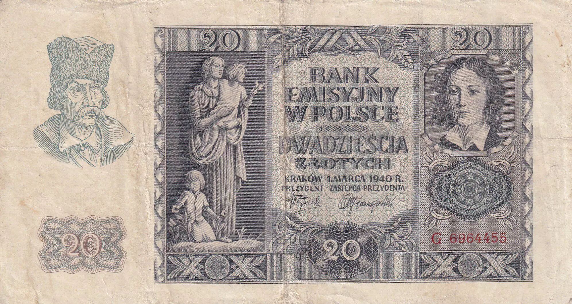 Banknote Poland 20 Zlotych - Woman's portrait - 1940 - Serial G - P.95