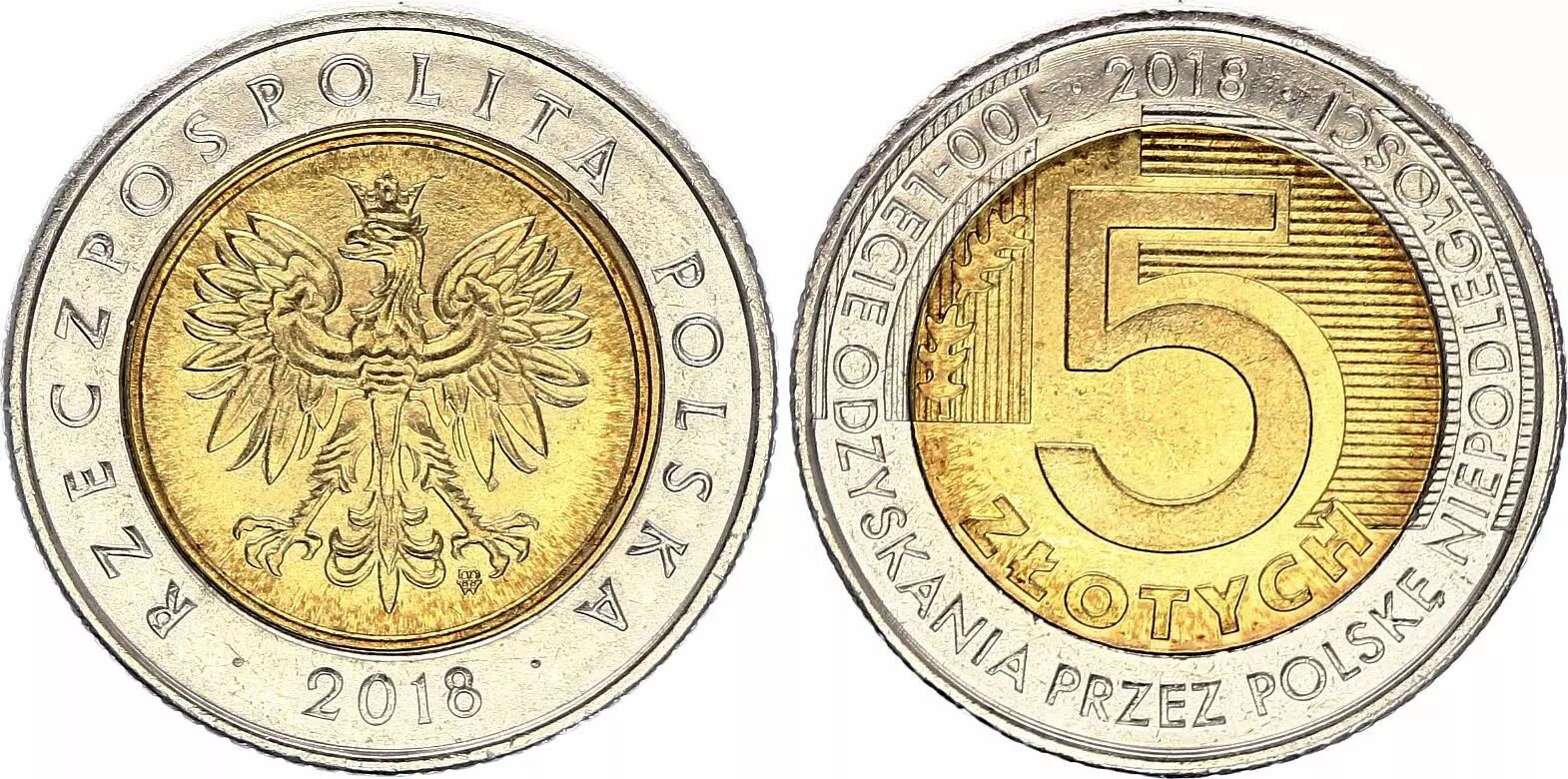 Coin Poland 5 Zlotych 2018 - 100th Ann Independance - Bimetal