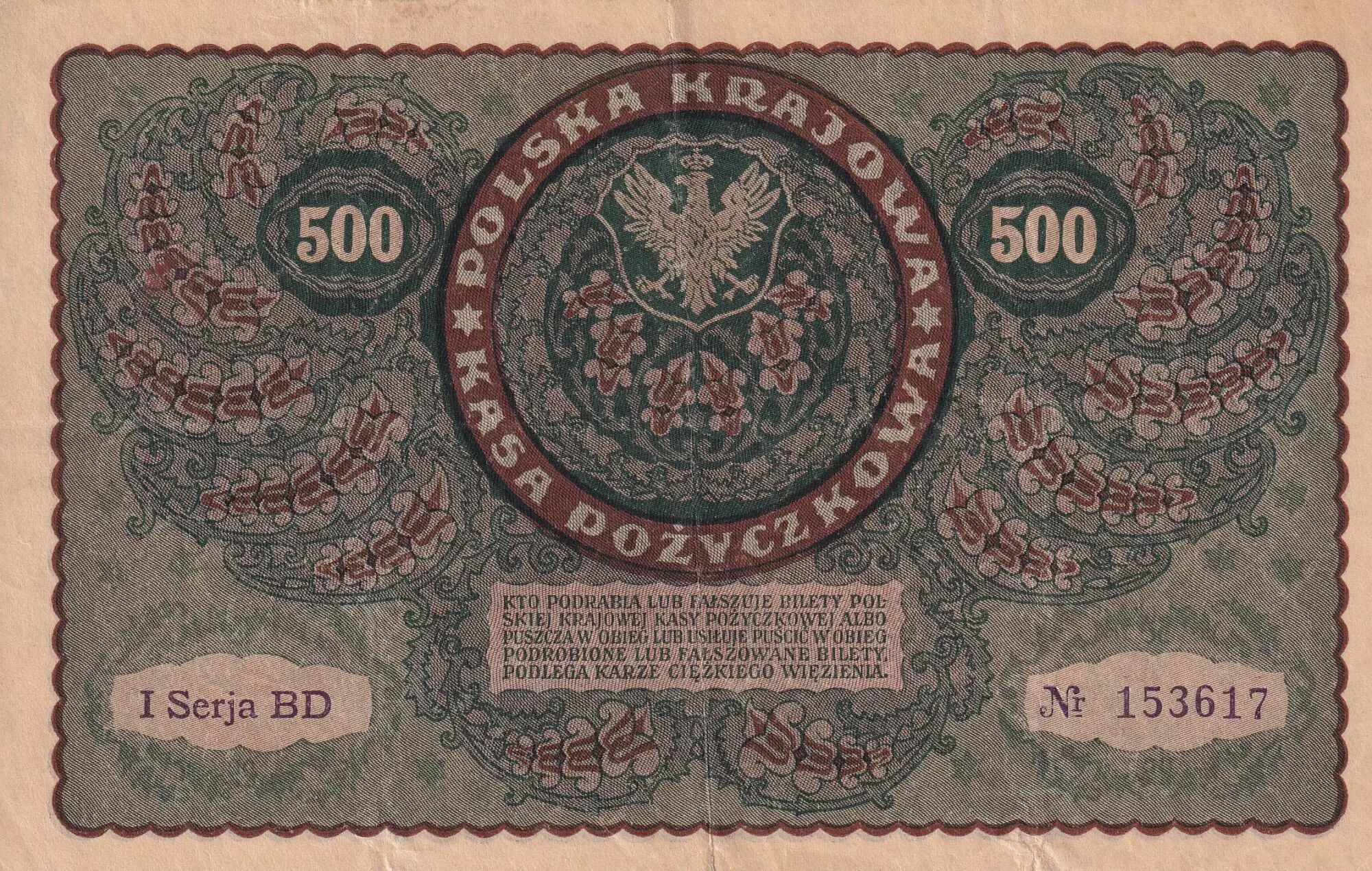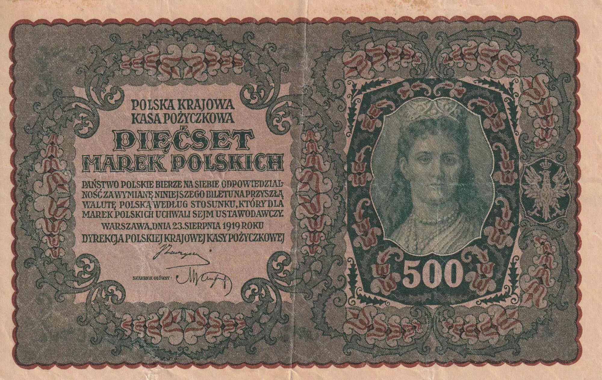 Banknote Poland 500 Marek - Woman - Eagle - 1919 - P.28