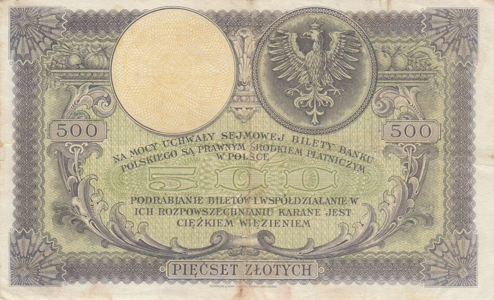 Home > > Poland 500 Zlotych - T. Kosciuszko - Crowned Eagle - 28-02-1919 - Serial S.A.0497098