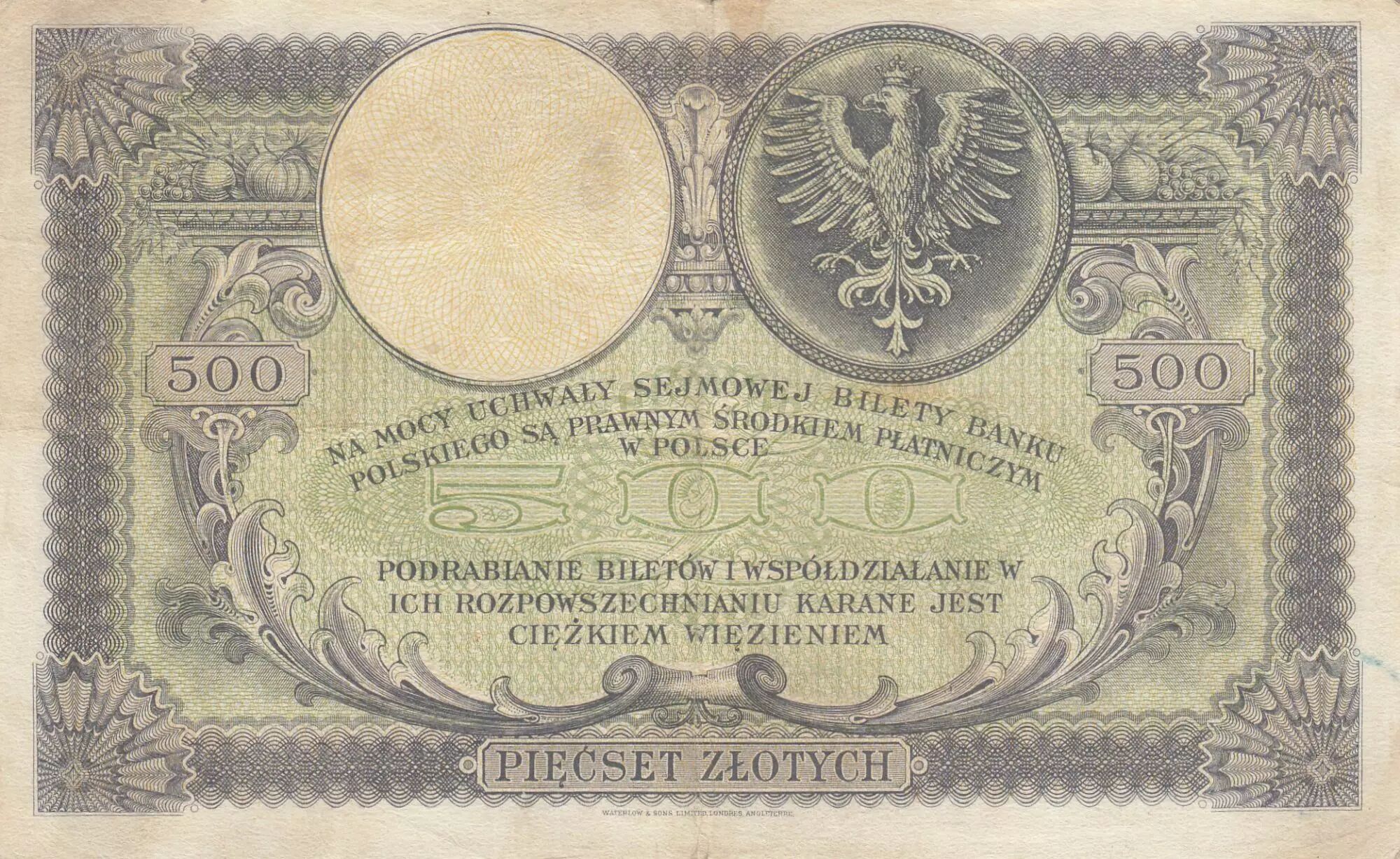 Home > > Poland 500 Zlotych - T. Kosciuszko - Crowned Eagle - 28-02-1919 - Serial S.A.2289771
