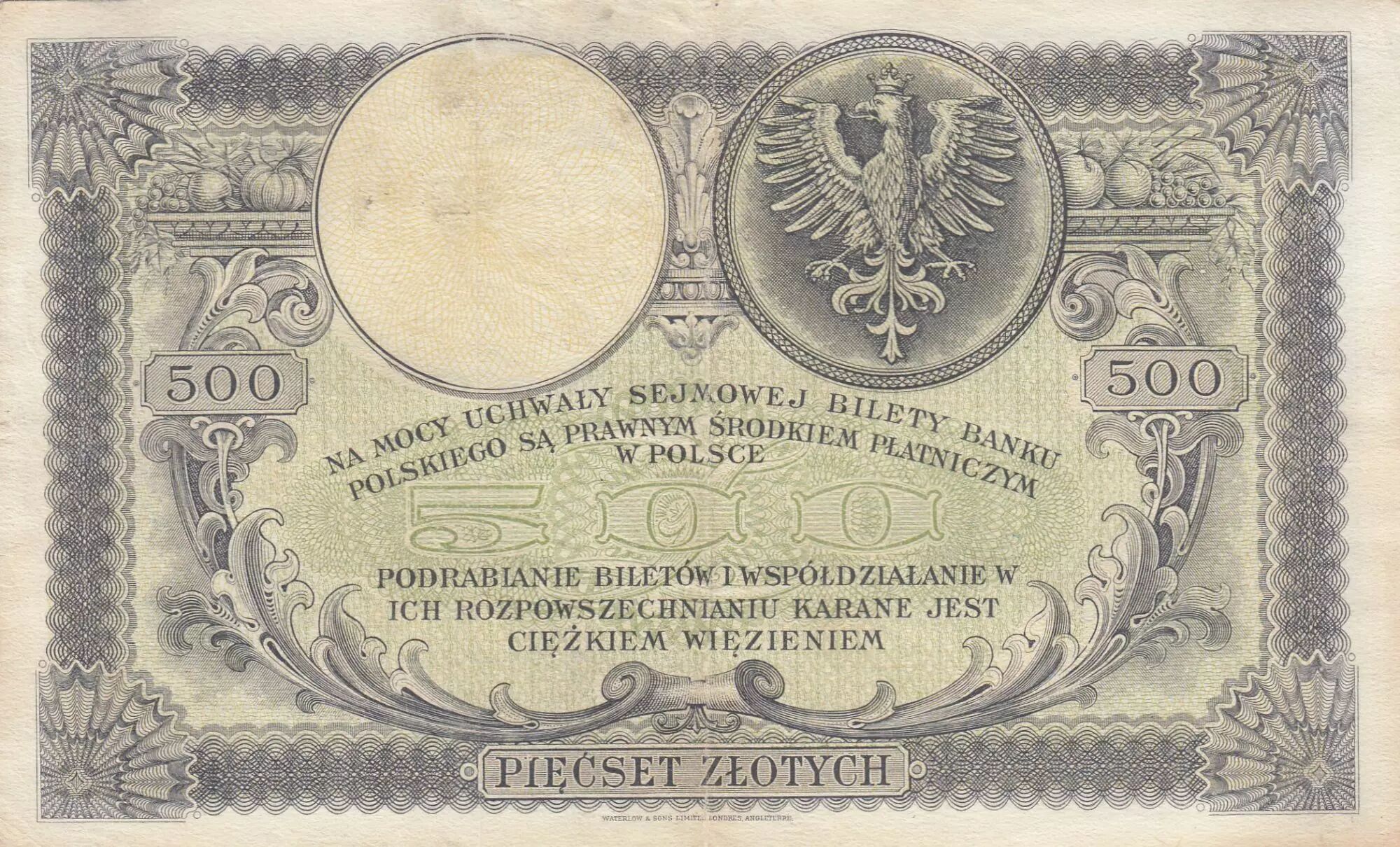 Home > World Banknotes > European Banknotes > Poland > Poland 500 Zlotych - T. Kosciuszko - Crowned Eagle - 28-02-1919 - Serial S.A.5983770