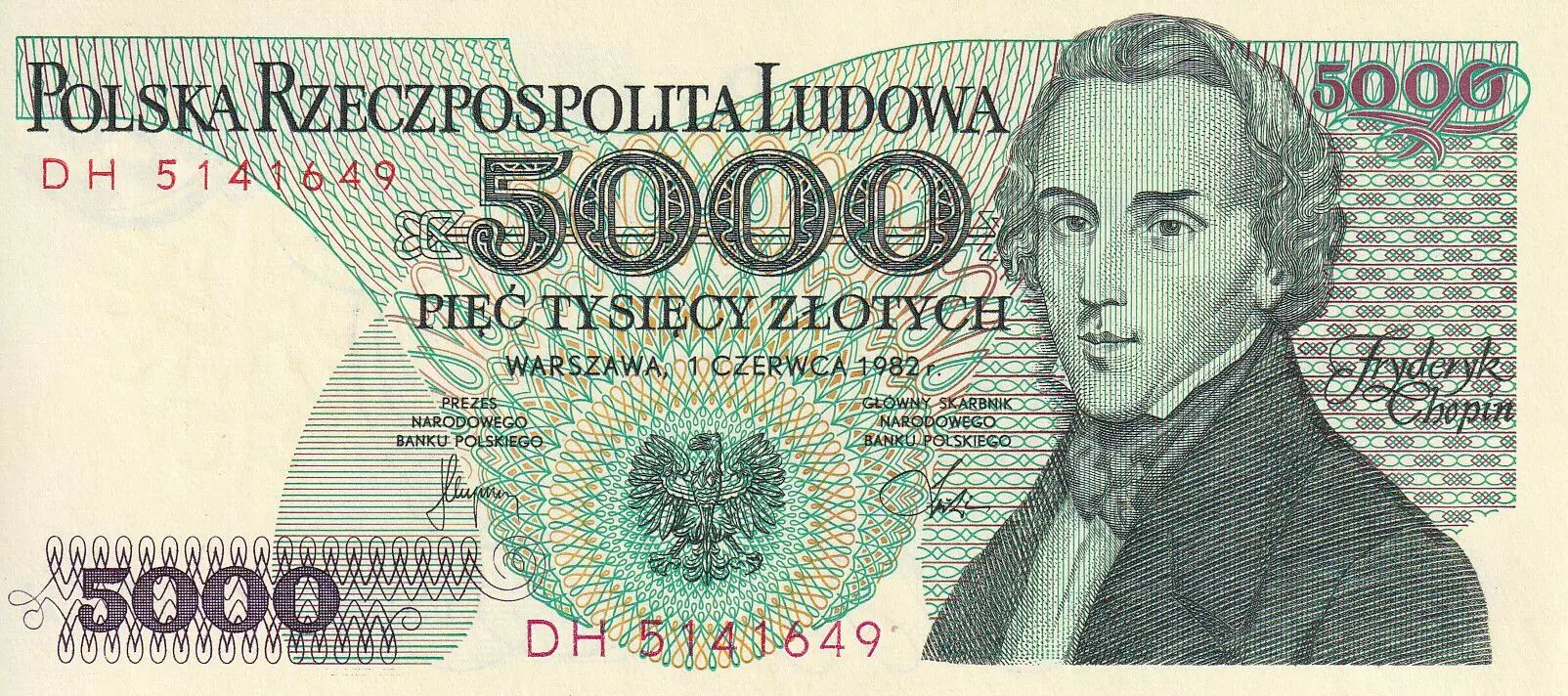 Home > > Poland 5000 Zlotych - F. Chopin - 1982 - Serial DH - P.150a