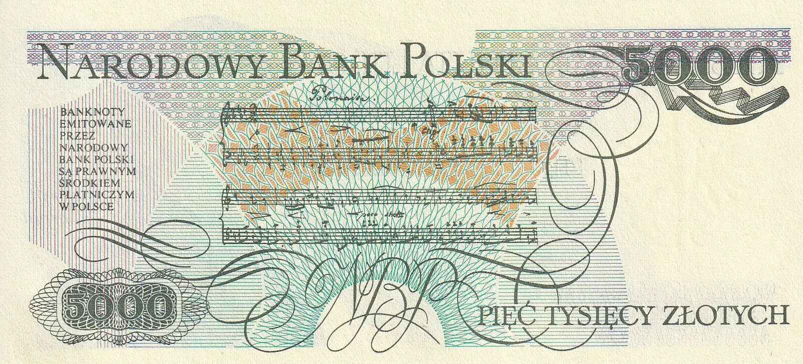 Banknote Poland 5000 Zlotych - F. Chopin - 1982 - Serial DH - P.150a