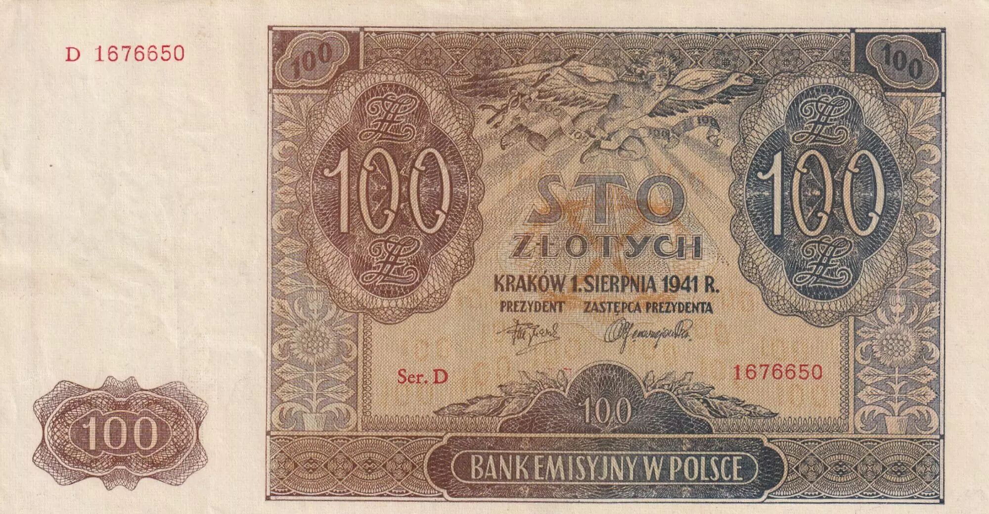 Billet Pologne 100 Zlotych 1941 - Marron, Eglise - Série D 1676650