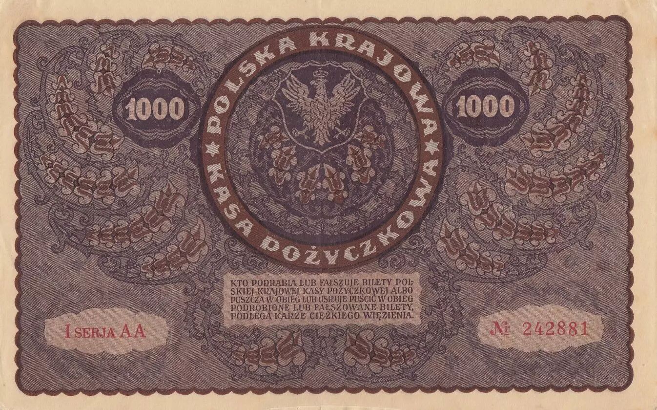 Billet Pologne 1000 Marek Tadeusz Kosciuszko - 1919 - I série AA