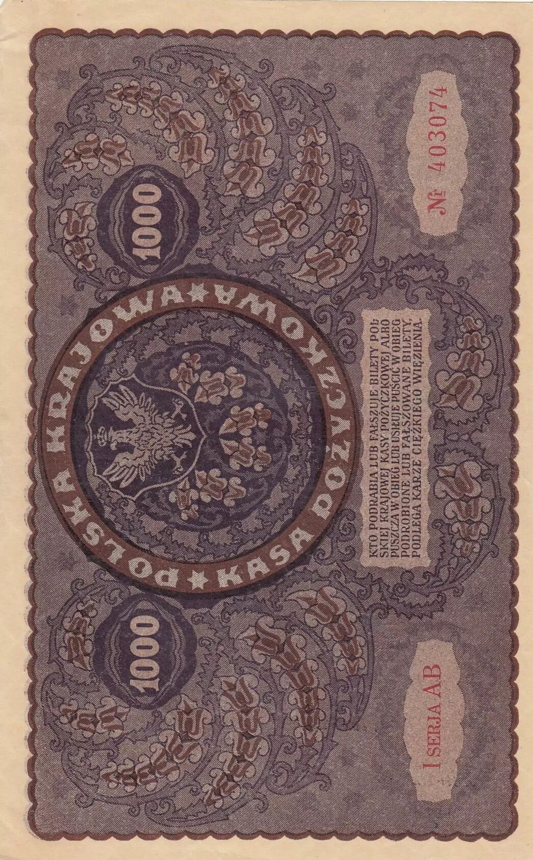 Billet Pologne 1000 Marek Tadeusz Kosciuszko - 1919 - I série AB