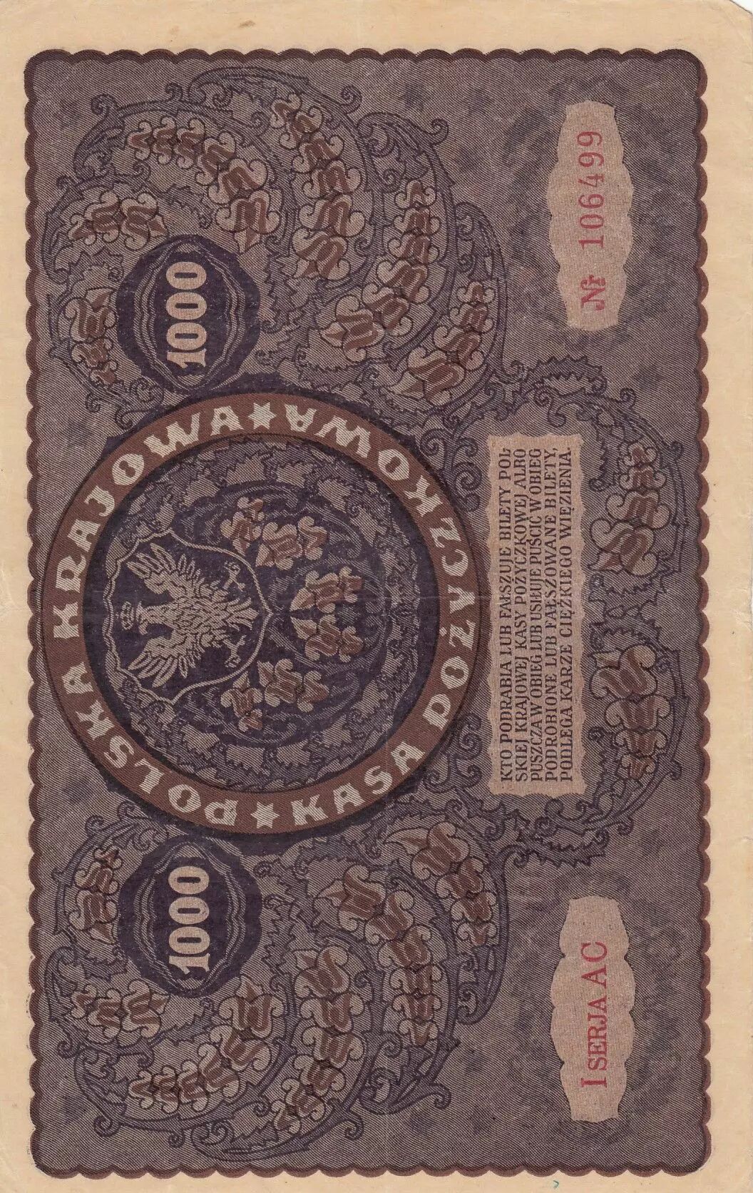Billet Pologne 1000 Marek Tadeusz Kosciuszko - 1919 - I série AC