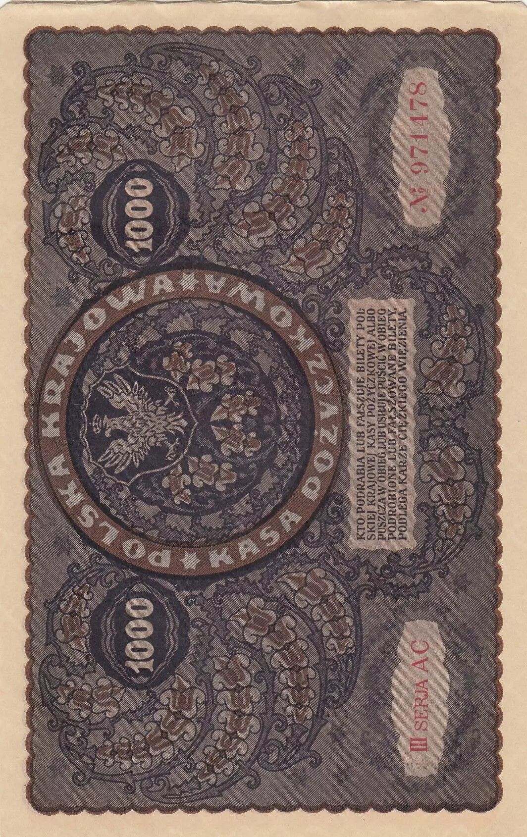 Billet Pologne 1000 Marek Tadeusz Kosciuszko - 1919 - III série AC