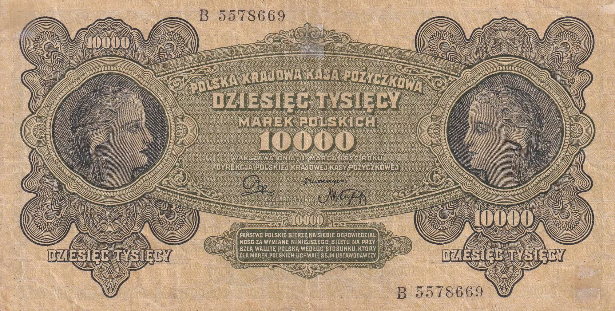 Accueil > Archivage > archivage-Billets du Monde > Pologne 10000 Marek - 1922 - Série B - P.32
