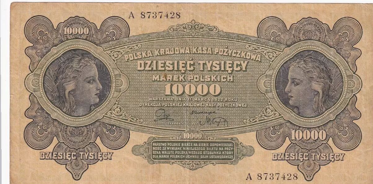 Billet Pologne 10000 Marek - Portrait de femmes - 1922 - Série A 8737428