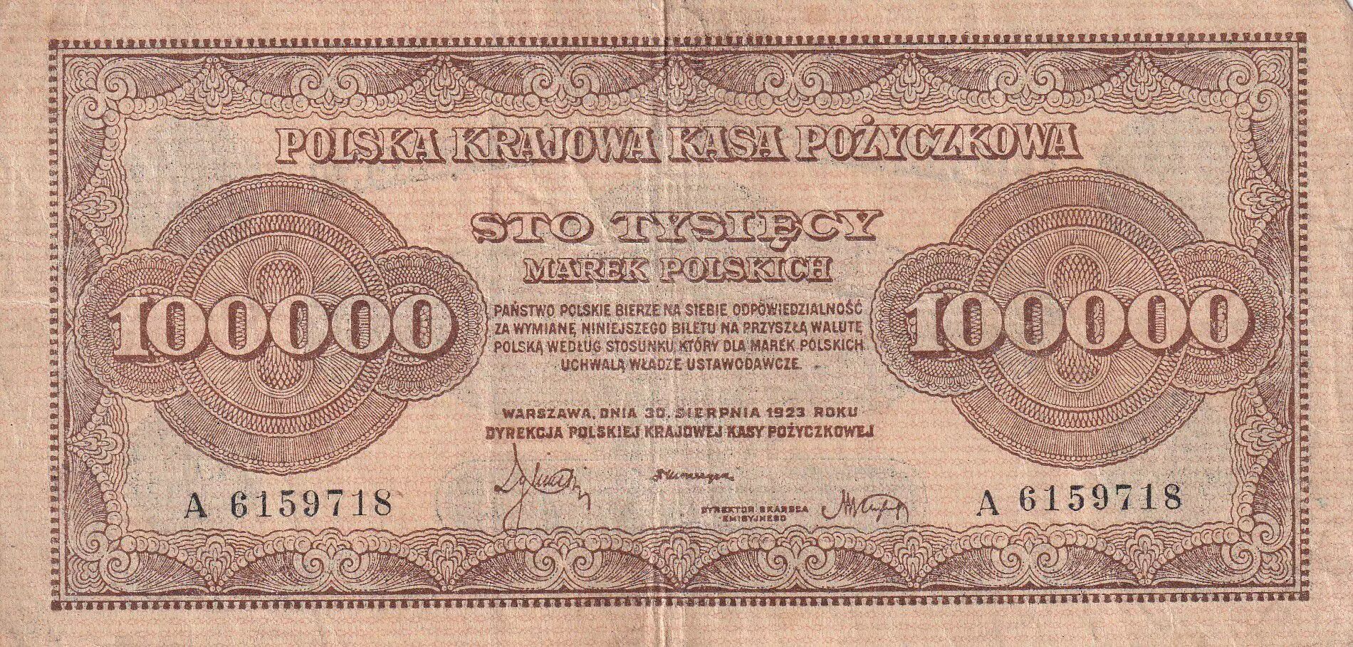 Billet Pologne 100000 Marek - Aigle - 1923 - Série A - TTB - P.34