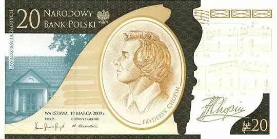 Accueil > Billets du Monde > Billets d'Europe > Pologne > Pologne 20 Zlotych Frédéric Chopin - 200ème anniversaire