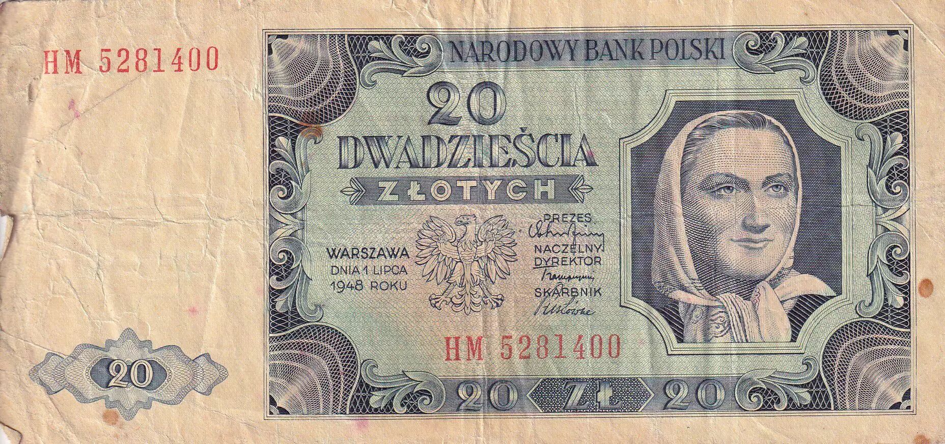 Accueil > Archivage > Pologne 20 Zlotych - Portrait de femme - 1948 - Série HM - P.137