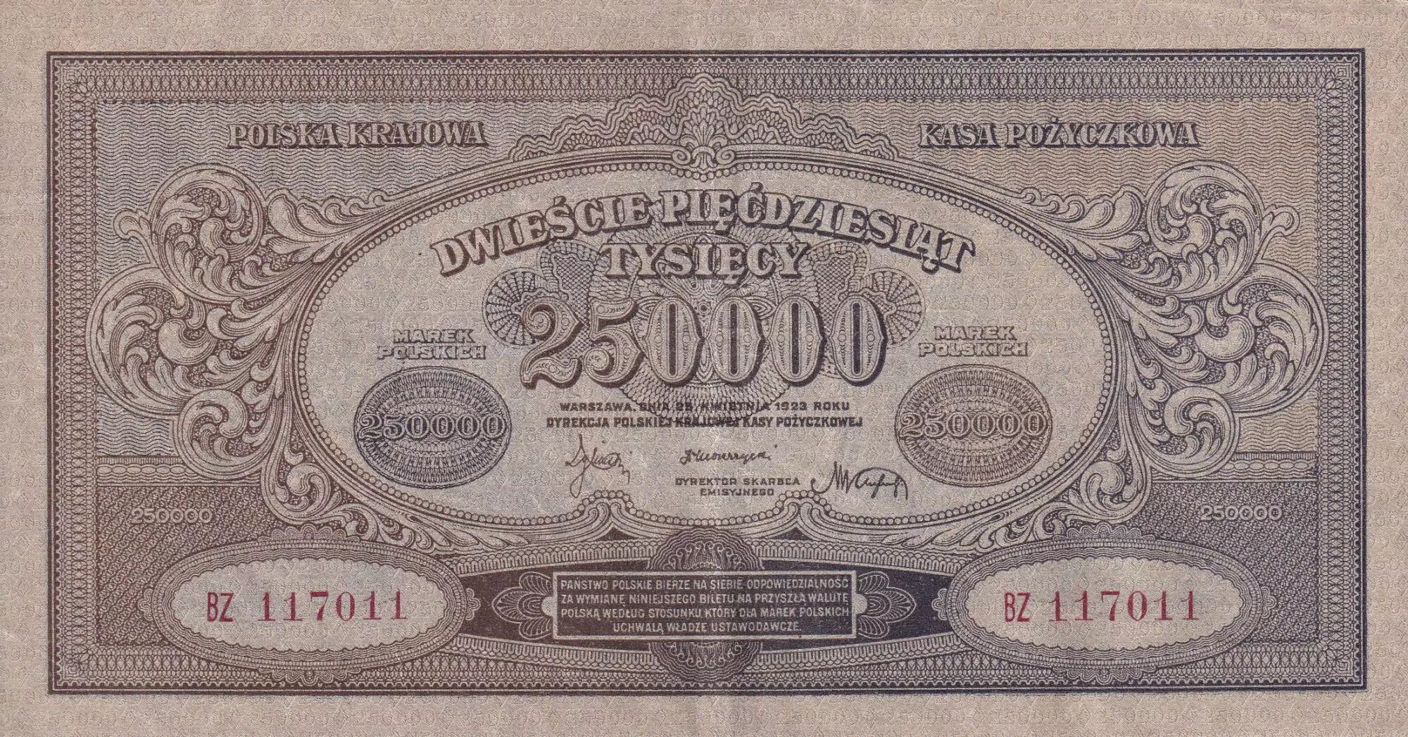 Accueil > Archivage > Pologne 250000 Marek - Aigle couronné - 1923 - Série BZ - TTB+ - P.35