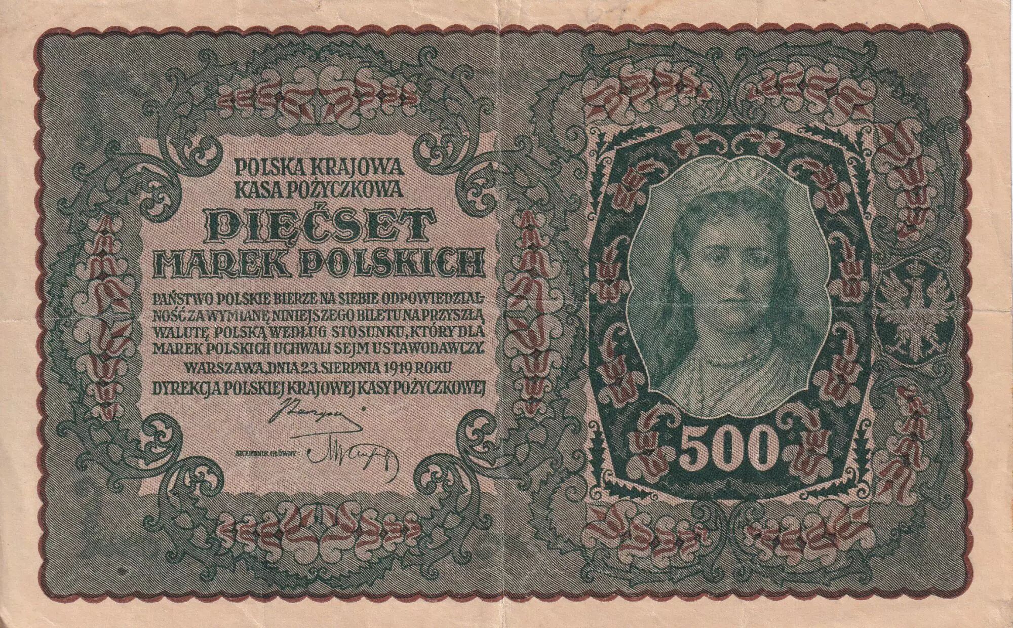Accueil > Archivage > Pologne 500 Marek - Femme - Aigle - 1919 - P.28