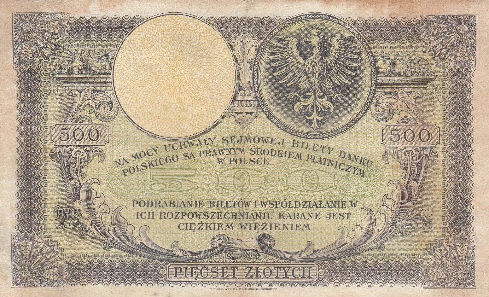 Billet Pologne 500 Zlotych - T. Kosciuszko - Aigle couronné - 28-02-1919 - Série S.A.0999566