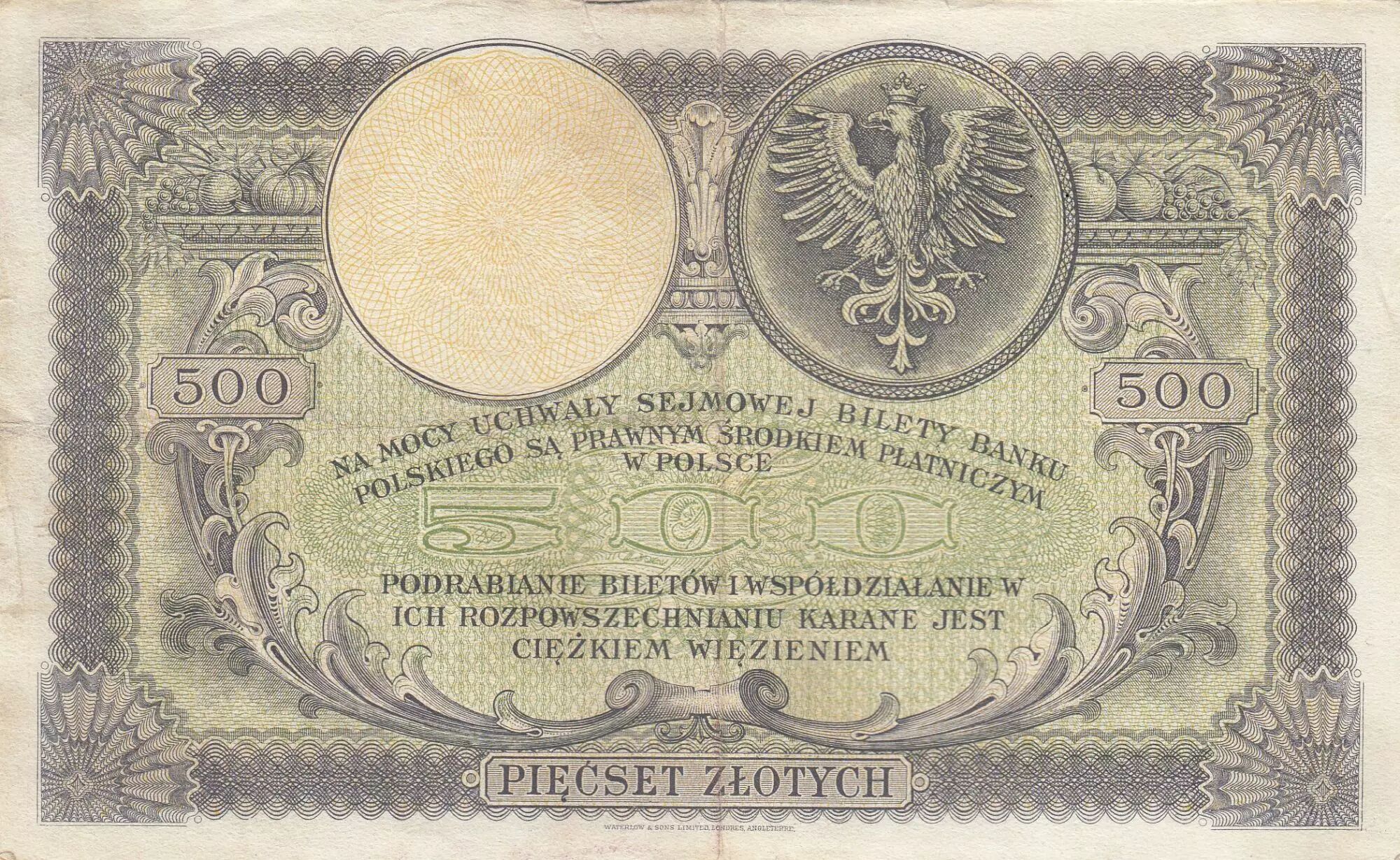 Billet Pologne 500 Zlotych - T. Kosciuszko - Aigle couronné - 28-02-1919 - Série S.A.1153580