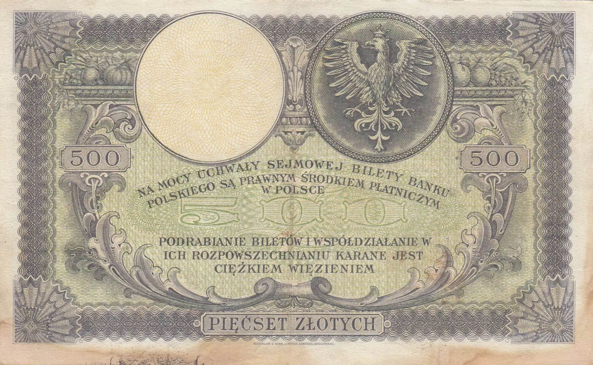 Billet Pologne 500 Zlotych - T. Kosciuszko - Aigle couronné - 28-02-1919 - Série S.A.1488581