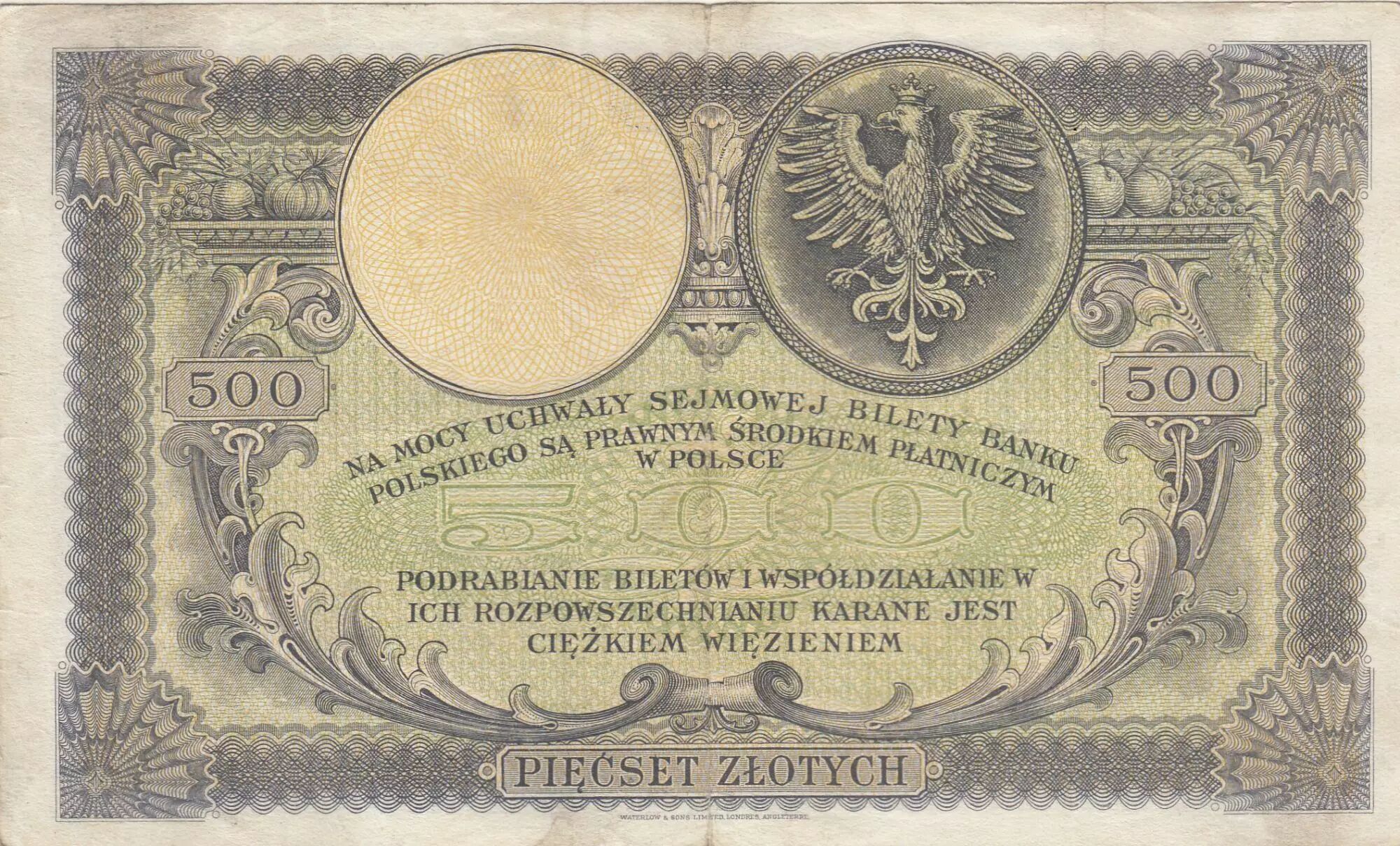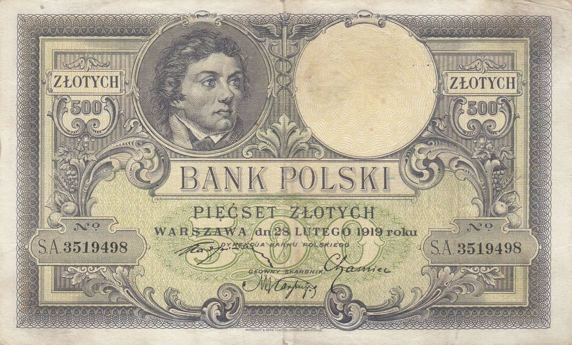 Billet Pologne 500 Zlotych - T. Kosciuszko - Aigle couronné - 28-02-1919 - Série S.A.3519498