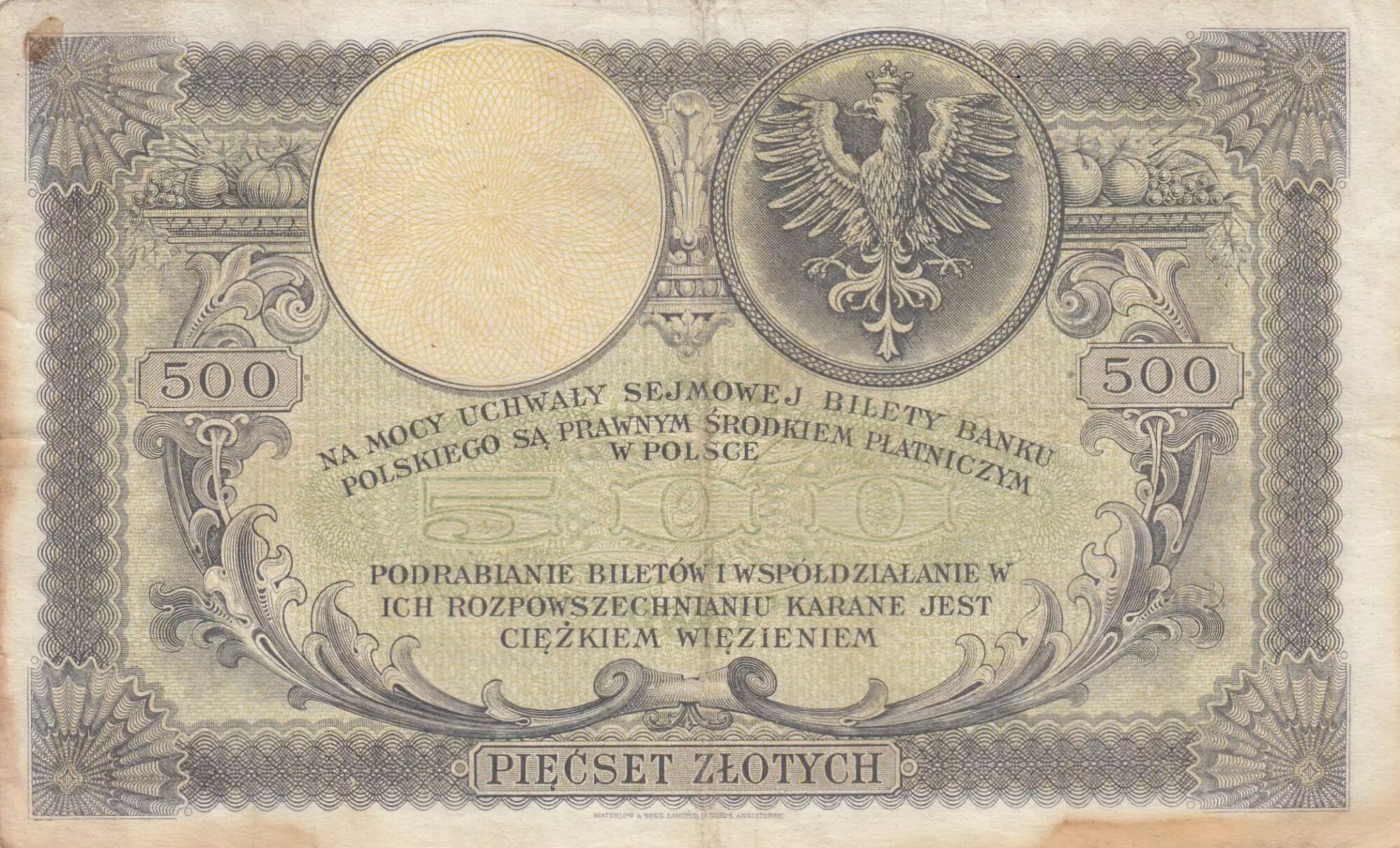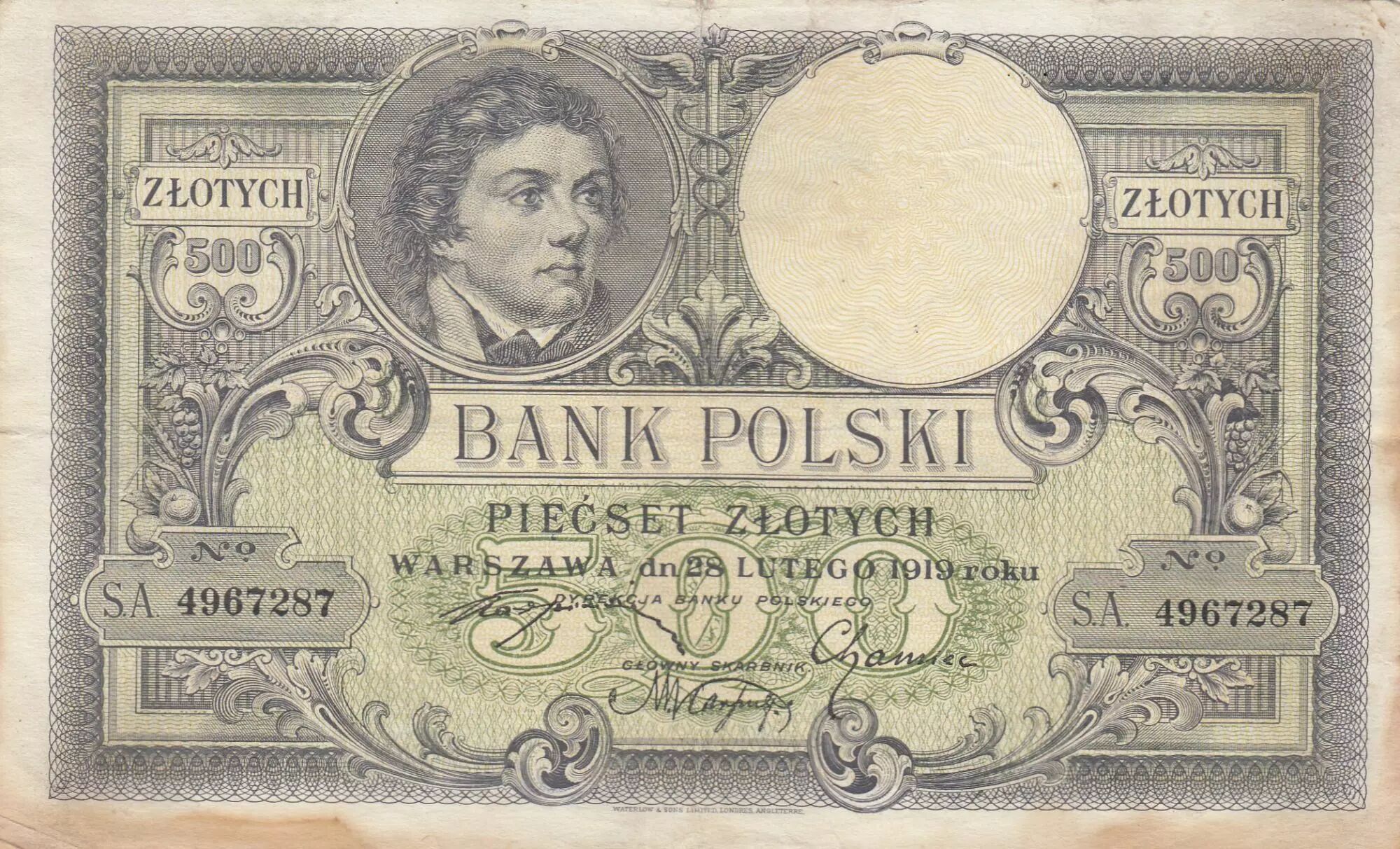Billet Pologne 500 Zlotych - T. Kosciuszko - Aigle couronné - 28-02-1919 - Série S.A.4967287