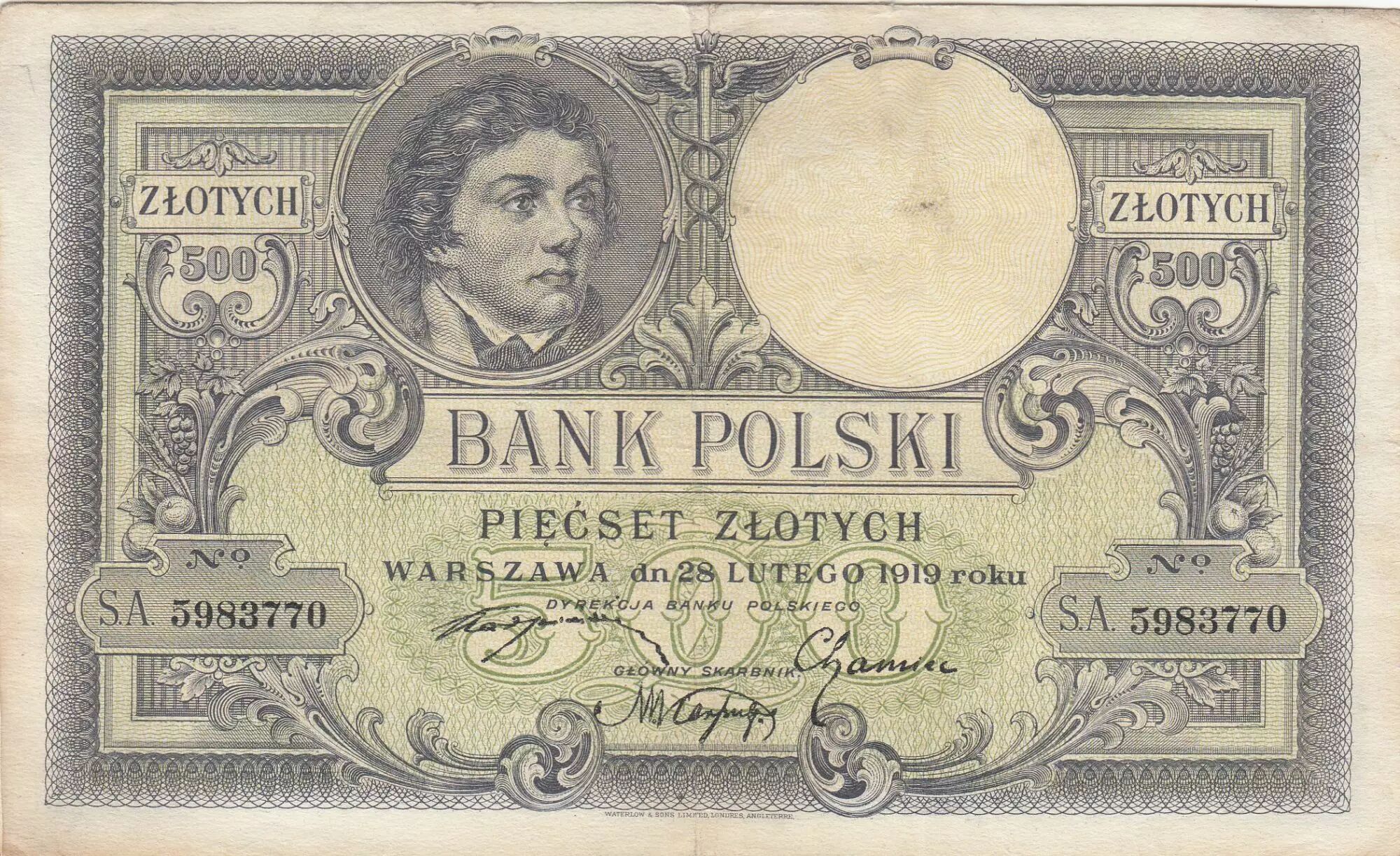 Accueil > Billets du Monde > Billets d'Europe > Pologne > Pologne 500 Zlotych - T. Kosciuszko - Aigle couronné - 28-02-1919 - Série S.A.5983770