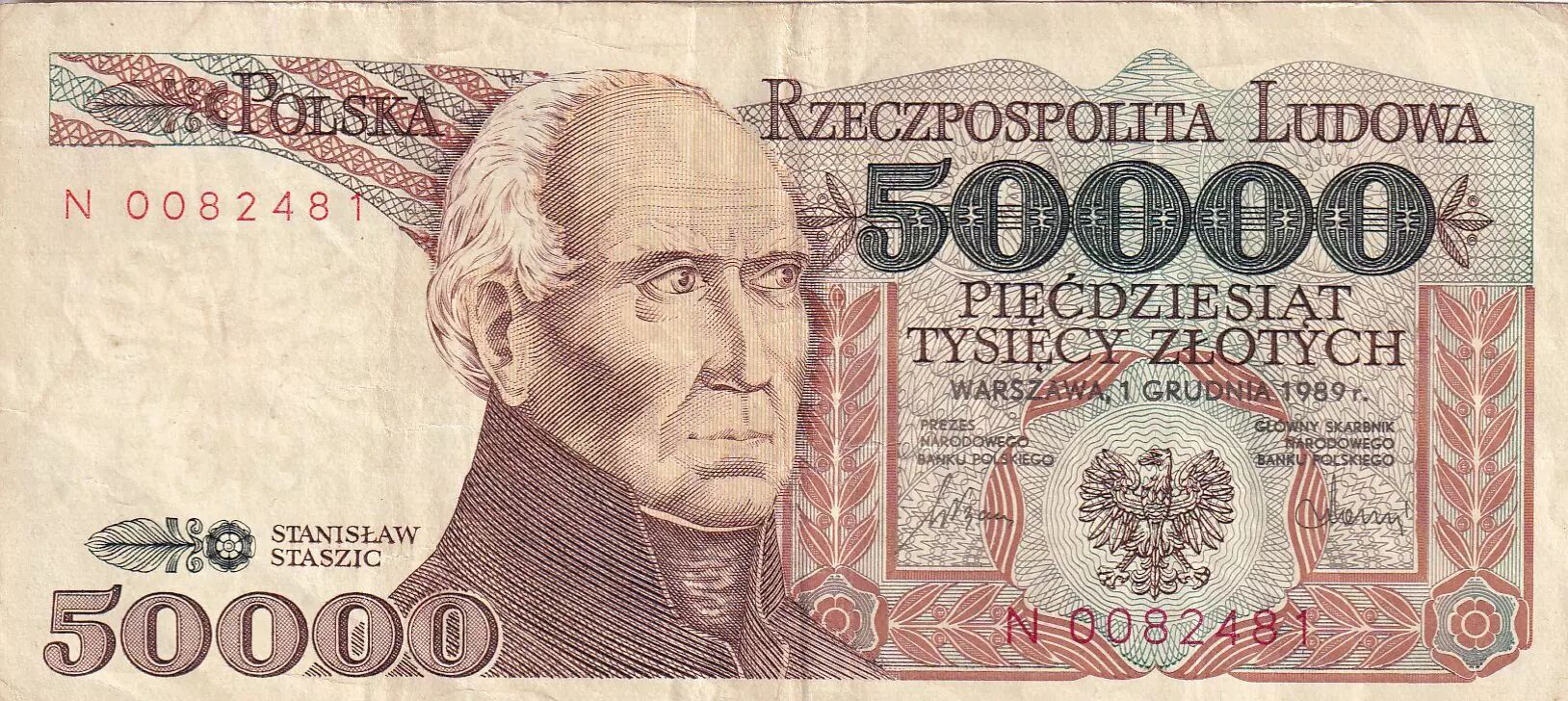 Accueil > Archivage > Pologne 50000 Zlotych - S. Staszic - 1989 - Série N - P.153